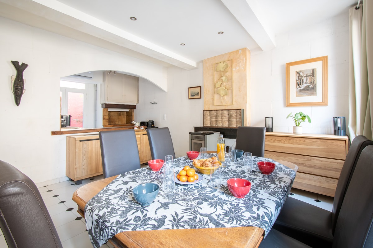 70 մ2 մակերեսով գյուղական տուն միջնադարյան քաղաքի կենտրոնում ՝ թեքահարթակներով, հանգիստ փողոցում, գլխավոր փողոցին մոտ և Փլեյս Սեն Լուի ՝ իր բարերով և ռեստորաններով: Այս նոր վերանորոգված տունը հանգիստ և էկզոտիկ վայր է, իդեալական է ձեր տոների համար և բացահայտեք Կամարգուն, աղի թավաները, հեծանվով բացահայտելու հեծանվային🚲 արահետները և մեքենայով հինգ րոպե տեսեք ֆլամինգոները🦩, ⛱️☀️ծովը, լողափերը: