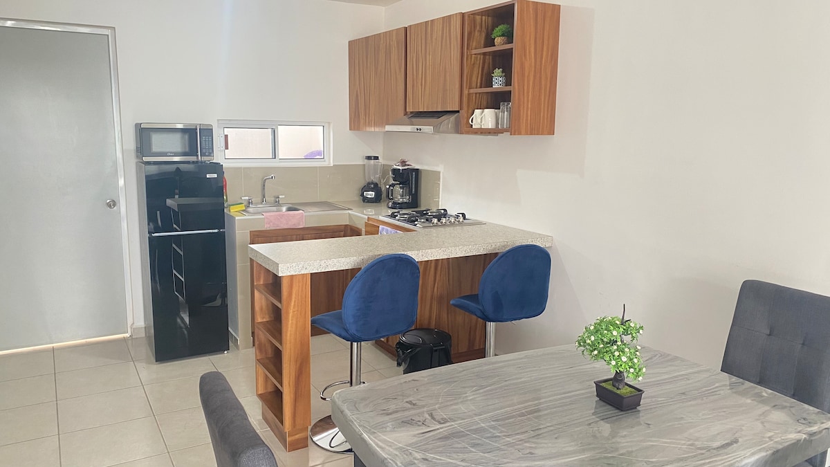 Disfruta de la comodidad de este alojamiento tranquilo y céntrico. Apartamento completamente nuevo en primer nivel, lo que te permitirá disfrutar de la tranquilidad de un espacio amplio y confortable durante la estancia. A solo unas cuadras del centro de Tampico (catedral, plaza de armas y plaza de la libertad), mercado de tampico y el canal de la cortadura. Ubicado a 25 minutos de la playa y 5 minutos de la laguna del carpintero moviéndote en automóvil, entre otros destinos por visitar...