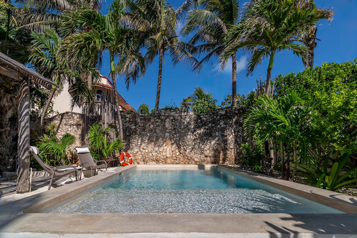 Հմայիչ կացարան Կանկունի կենտրոնում ։ Մուտքը, որը դուք կդարձնեիք ձեր այցի վայրը, տան հետևի դռնով է, և դուք ժամանում եք ՝ ընդհանուր լողավազանի տարածքում անցնելով քարե արահետով ։ Տարածքն առանձին է և ներառում է զուգարան և խոհանոցիկ, իդեալական է պարզ իրեր պատրաստելու կամ սնունդը սառեցնելու համար ։ Մի քանի մետր հեռավորության վրա կա հասարակական տրանսպորտ դեպի լողափեր և 5 րոպե հեռավորության վրա է գտնվում ado ավտոկայանը ՝ դեպի օդանավակայան և այլ զբոսաշրջային ուղղություններ երթուղիներով ։