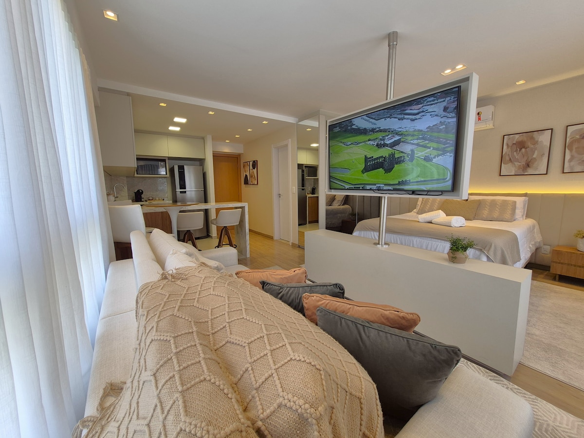 Viva o charme de Gramado no coração da cidade! Nosso studio moderno de 40m², no Vita Boulevard, foi planejado para oferecer conforto, praticidade e acolhimento. 600m da Rua Coberta Kit de boas-vindas Acomoda até 3 pessoas 1 cama queen • 1 sofá-cama Ideal para casais e famílias que buscam bem-estar e excelente localização. Garanta sua estadia!