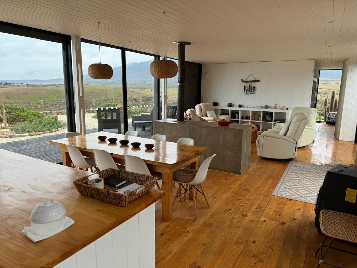 ¡Bienvenidos a nuestro refugio off grid en Huentelauquén! Nuestra casa off grid se encuentra en un entorno tranquilo y pintoresco, con acceso directo a una playa virgen. Aquí podrás desconectarte por completo de la rutina diaria y sumergirte en un ambiente relajante. El interior de la casa cuenta con espacios luminosos y acogedores, cocina equipada, cómodas habitaciones, baños modernos y espacios con vistas panorámicas al mar, donde disfrutarás impresionantes puestas de sol.