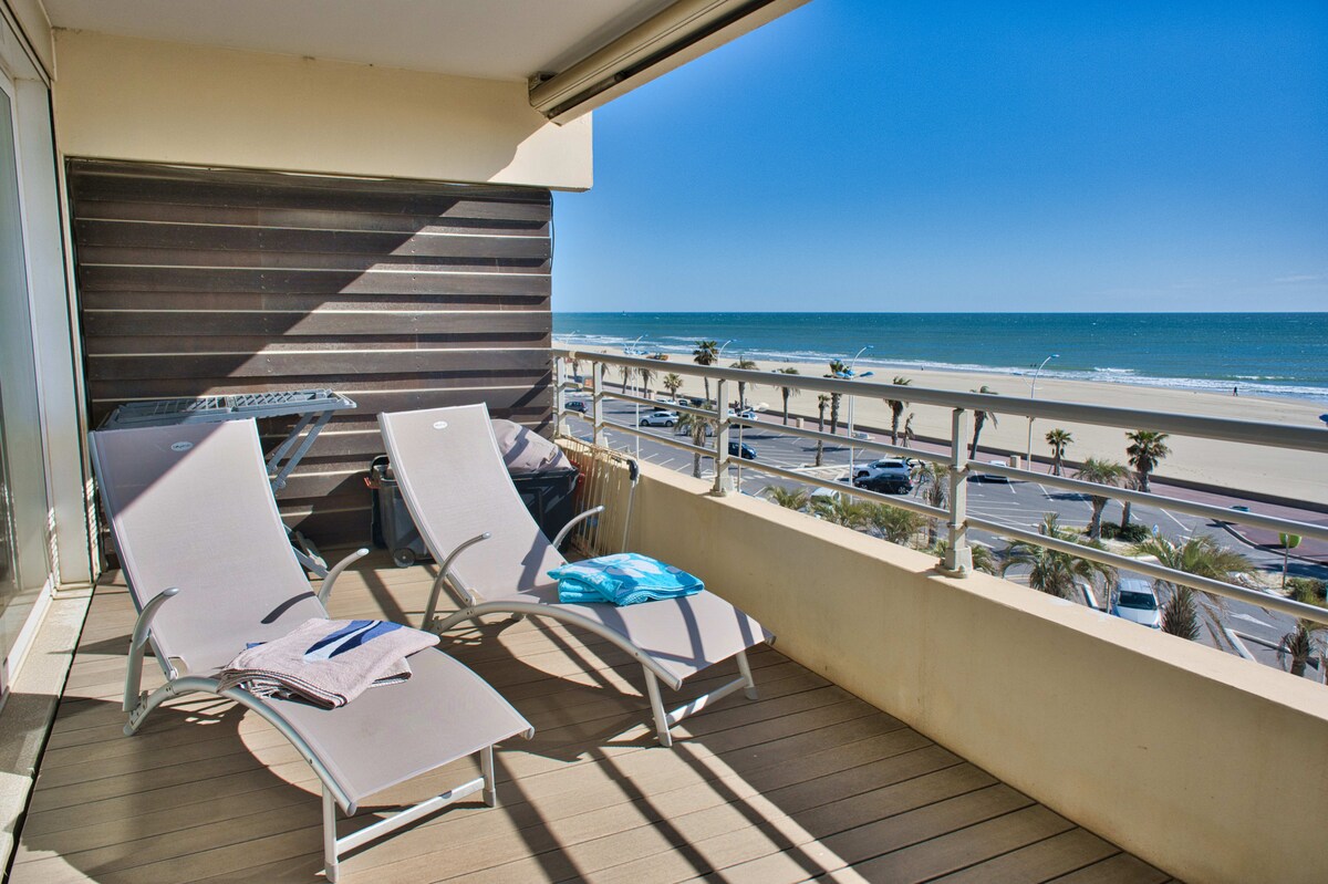 Grand T2 հարմարավետ տեռաս ՝ անմիջապես դեպի ծով ՝ գոլֆի մոտ