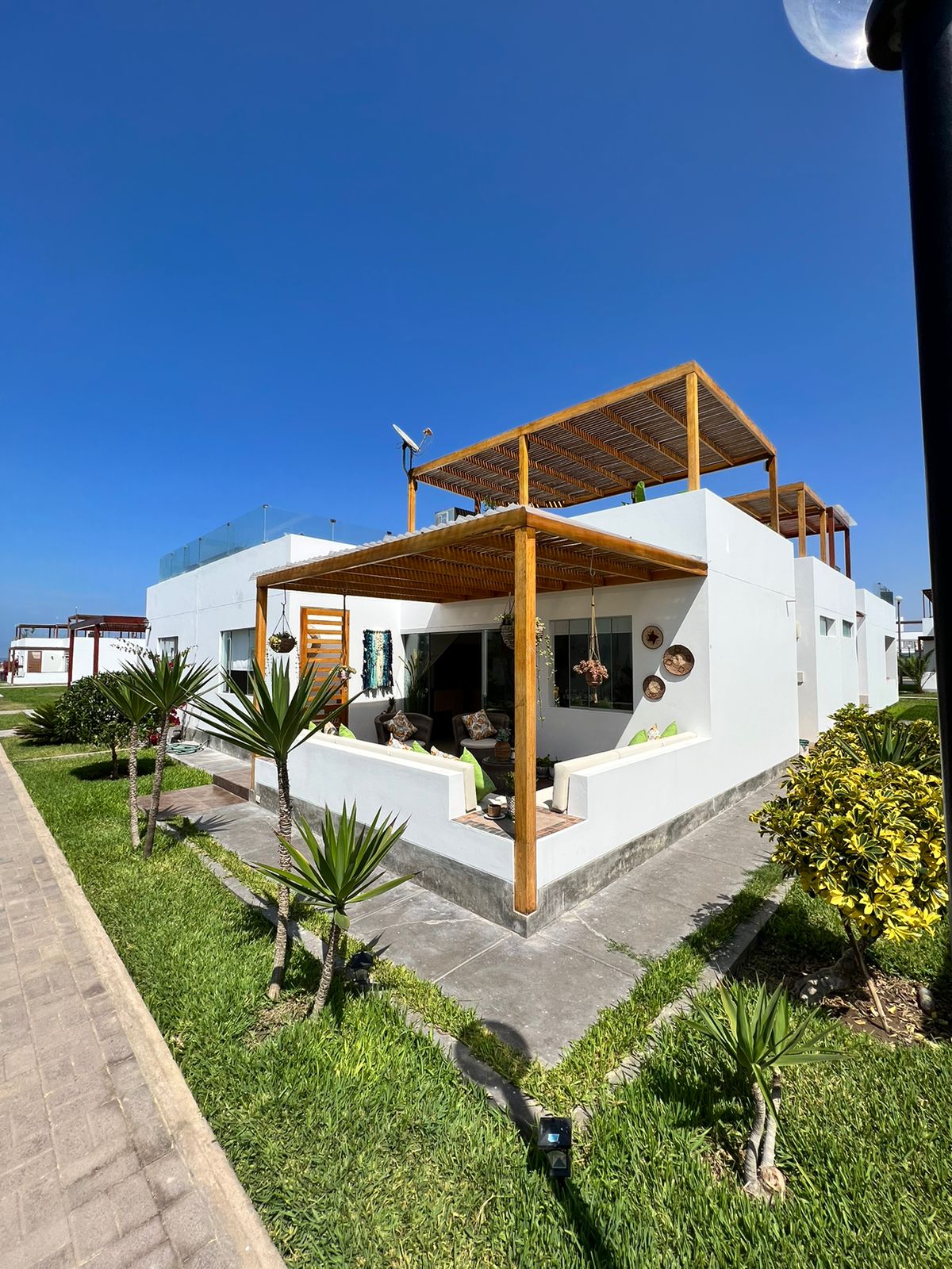 Hermosa casa de playa, ubicada en el condominio "Playa Azul" (Km 127 Panamericana Sur) con vista al mar a unos pasos de la playa, lista para que compartas y disfrutes con tu familia. El condominio cuenta con varias áreas comunes para deporte, restaurante, piscinas, juegos para niños, zona de fogata, seguridad permanente etc etc