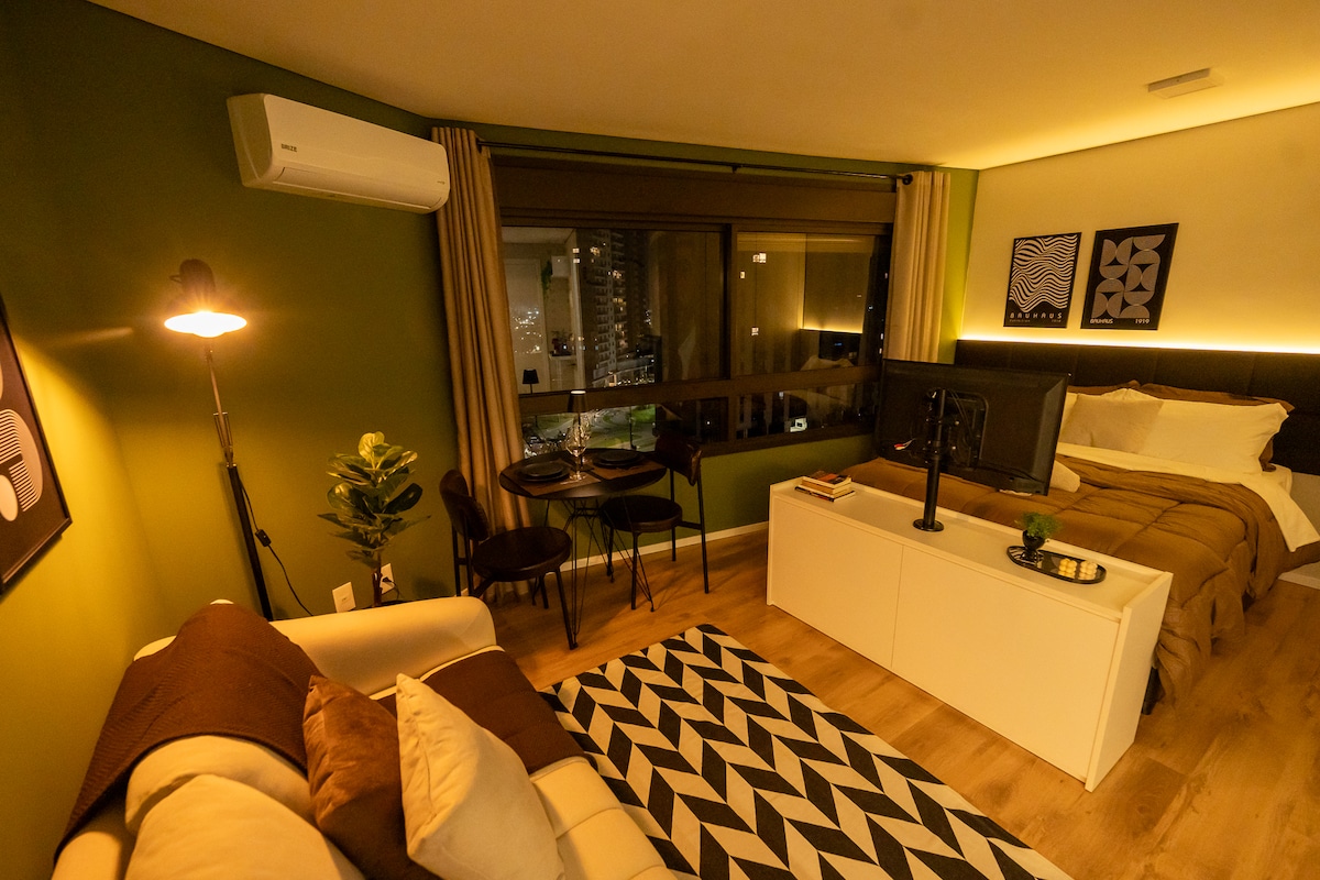 Բարի գալուստ Vivaz Studio ։ Ժամանակակից, հարմարավետ և ֆունկցիոնալ տարածք, որը գտնվում է Պարկե Ունա թաղամասում ՝ պլանավորված թաղամասում, որը միավորում է կացարանները, ծառայությունները և ժամանցը ։ Կատարյալ տարածք նրանց համար, ովքեր փնտրում են հարմարավետություն, գործնականություն և անվտանգություն ։