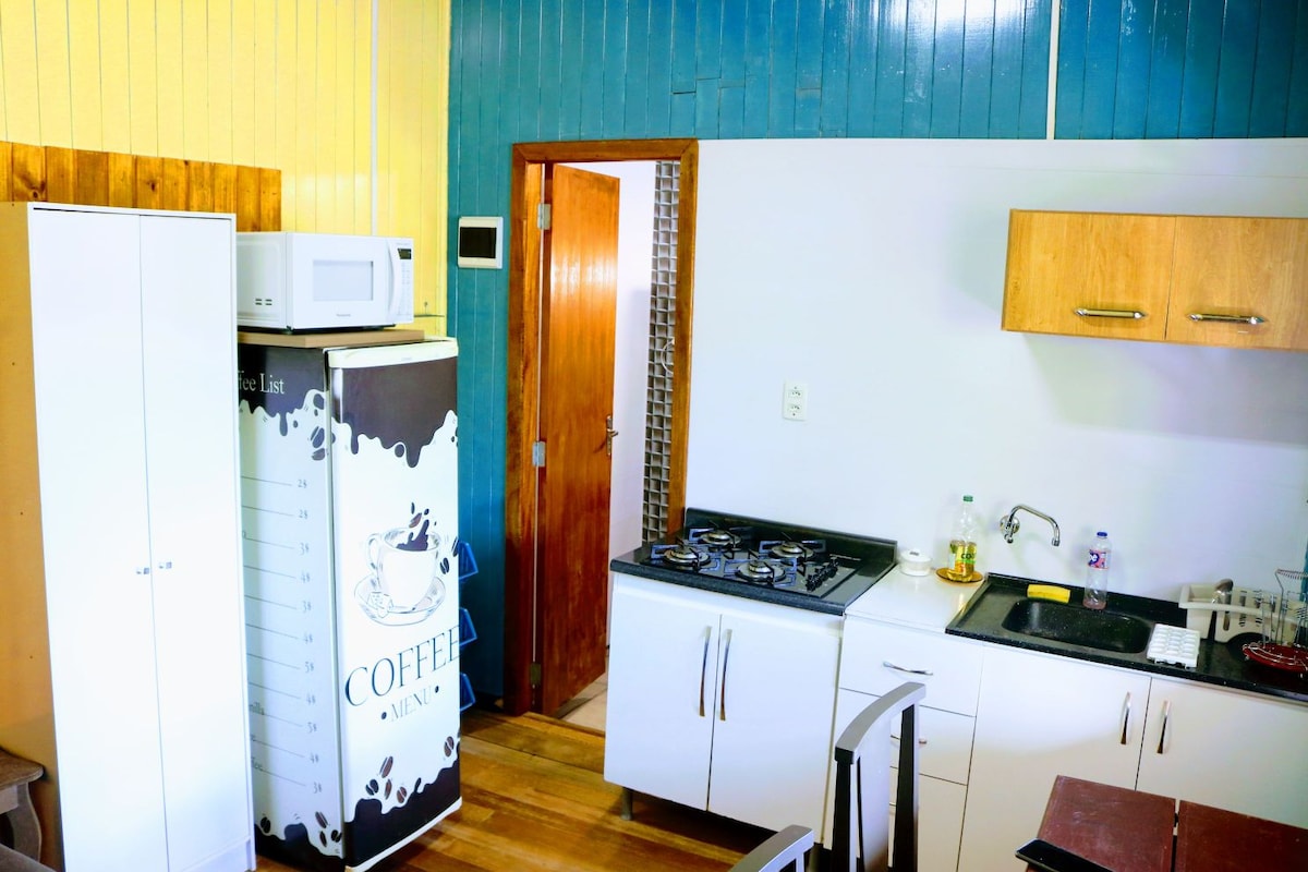 Հանգստացեք այս խաղաղ, նորաոճ տարածքում ։ Jú - ի «ստուդիան» նախատեսված էր որպես հյուրատուն: Այն ունի լիարժեք խոհանոց, լոգասենյակ, հարմարավետ մահճակալ, մեծ պատշգամբ ՝ որպես թաղամասի գեղեցիկ տեսարան, որտեղ կարող եք հանգստանալ ցանցաճոճում: Այն ունի նաև փոքր պարտեզ ՝ կոմպակտ մանղալով: Այն գտնվում է կենտրոնից 800 մետր հեռավորության վրա, սալարկված փողոցում, հանգիստ թաղամասում, որտեղ կան խանութներ ։ Տեսարժան վայրերի, հանգստի կամ աշխատանքի համար, Cantinho da Jú - ն պատրաստ է ծառայել ձեզ: