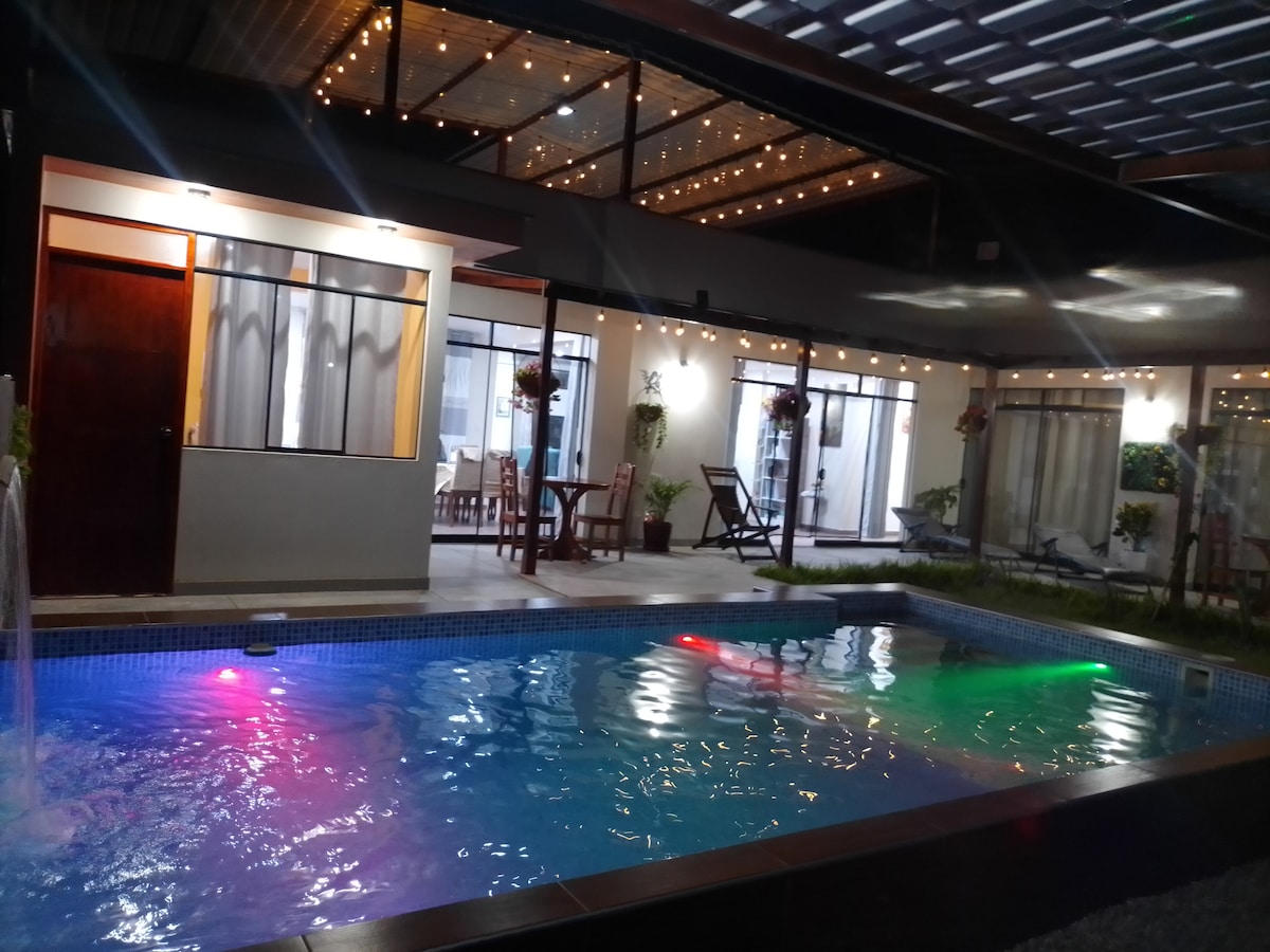 Անջատեք ձեր անհանգստություններն այս ընդարձակ, հանգիստ տարածքում ։ Պլանավորեք կեսօրից հետո լողավազանի գիշեր ընկերների կամ ընտանիքի հետ Մի անհանգստացեք մեքենաների քանակի մասին ։ Ավտոտնակը մեծ է ։ Կազմակերպեք ֆուլբիտոյի կամ վոլեյբոլի խաղ, մինչ պատրաստում եք մի քանի միս գրիլի մեջ: Կարող եք շեղվել կտուրին ՝ պլանշետային լուլբիտոյով, կամ պարզապես հանգստանալ կողքի ճոճանակին ։ Կա նաև այգի ՝ բազմազան ծաղիկներով և մրգատու բույսերով ։ Ամբողջ տունը վարձով է տրվում 5 հարթակներով ։