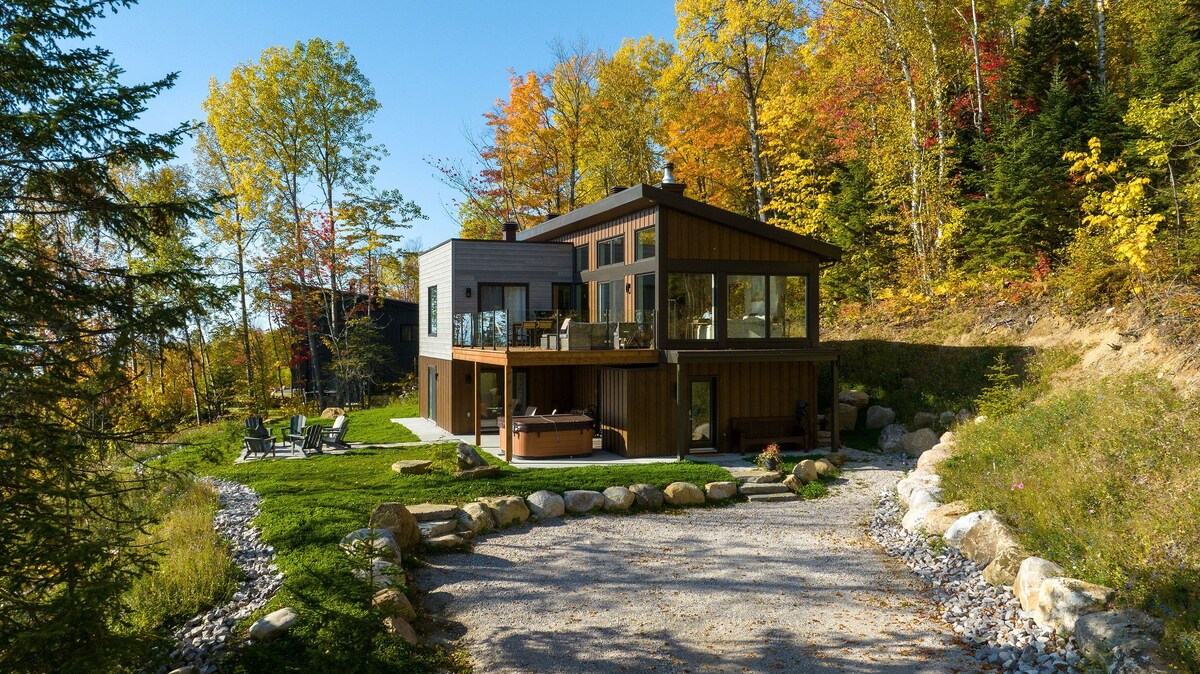 Small Scandinavian chalet for two people ideally located to enjoy the attractions of Charlevoix. It has a thermal circuit (hot tub, sauna, hammam) Very intimate and in the middle of the woods, the view overlooks the majestic river and the mountains in the distance. All the modern equipment is there and the comfort is absolute A/C and outdoor fireplace. The open concept design was designed for an immersive experience in nature: large windows, panoramic shower. Access via a private road at 500 m.