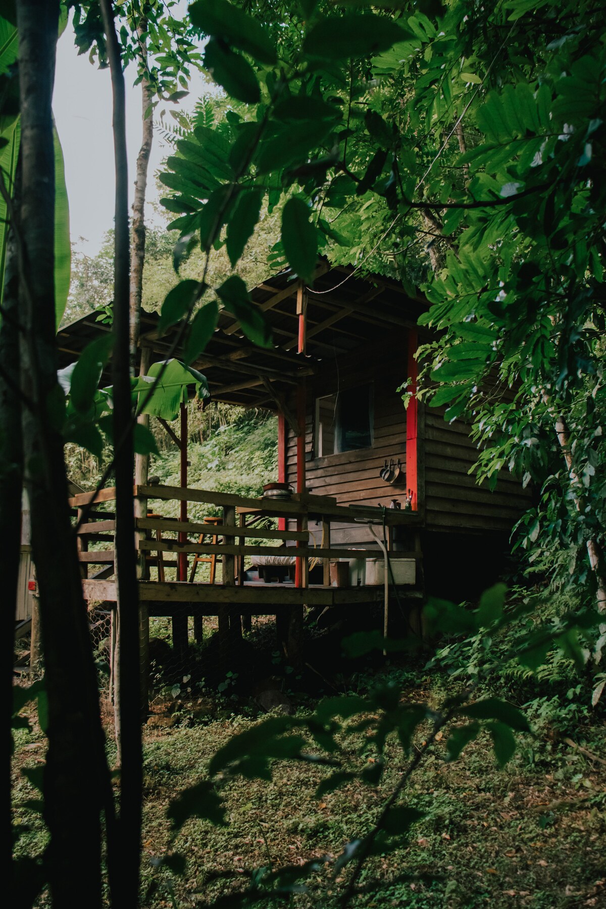 Cabana próxima a rio e natureza.