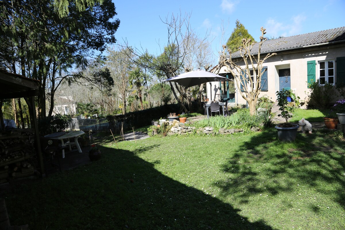 Charmante maison entre montagnes et océan. Nous vous proposons de venir vous ressourcer dans notre village au calme à 30 mins de Bayonne, des montagnes basque et de la forêt landaise. Maison attenante à celle du propriétaire, tout en étant complètement indépendante par son entrée et son jardin. Le village se situe à 2 mins et vous offre de nombreuses activités et commodités. Vous y trouverez le calme et la tranquillité. Entourez de poules,coq, 2 chèvres naines, ainsi qu’un chat et un chien.
