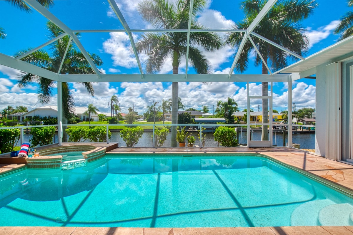★ Նոր 4 սենյակով/2 լոգասենյակով ջրափնյա տուն ★ Ամենաբարձր վարկանիշով մաքրության և հարմարավետության համար ★ Ջեռուցվող աղի ջրով լողավազան և ջակուզի ★ Վերանդա պատուհանով + Գրիլ + Մայրամուտի տեսարաններ ★ Լիովին կահավորված խոհանոց և խաղասենյակ ★ Ընդարձակ բաց հատակագիծ – 12 անձի համար ★ Ձկնորսություն, խարույկ և բացօթյա ճաշկերույթ ★ Հանգստացեք ափամերձ պալմաների տակ ★ Մի քանի րոպե Քեյփ Քորալ Բիչ և Dining ★ Մոտ է Ֆորտ Մայերսին, Սանիբելին և Գալֆ Ֆանին ✨ Villa Belleriva․ հարմարավետություն, ոճ և Ֆլորիդայի արև՝ դրախտում անմոռանալի հանգիստ ապահովելու համար։