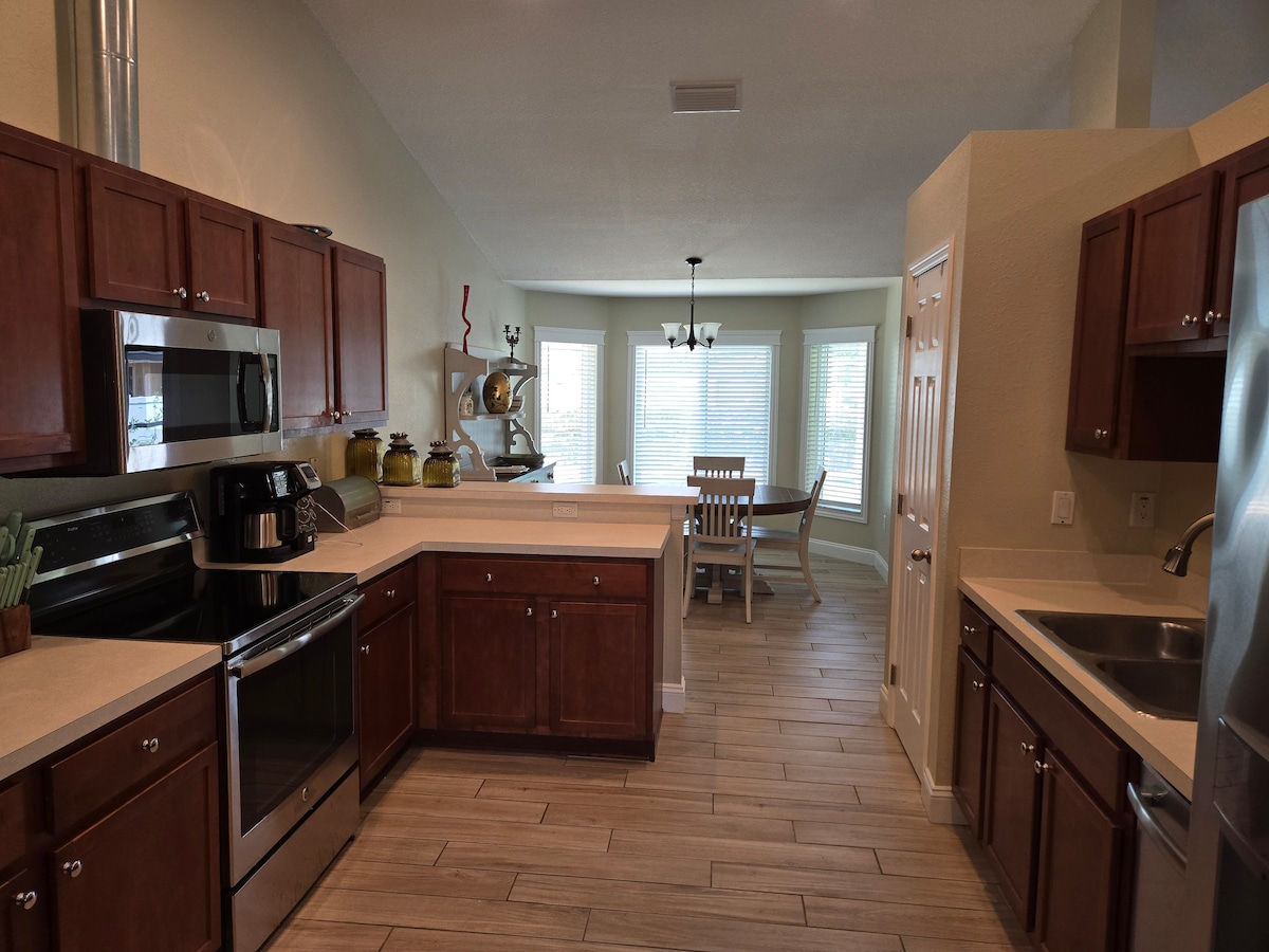 This is a great 3 bedroom 2 bath home in like new condition with all brand new furniture ready for you to relax in. This home is located in Southwest Cape Coral close to shopping, great restaurants, 27 hole golf course at Cape Royal. Located in a quiet neighborhood on an oversized 3 lot site with a huge private fenced back yard. Home has Wifi, cable TV, full lawn maintenance you do not need to do anything just bring your clothes and toothbrush everything you need is here.