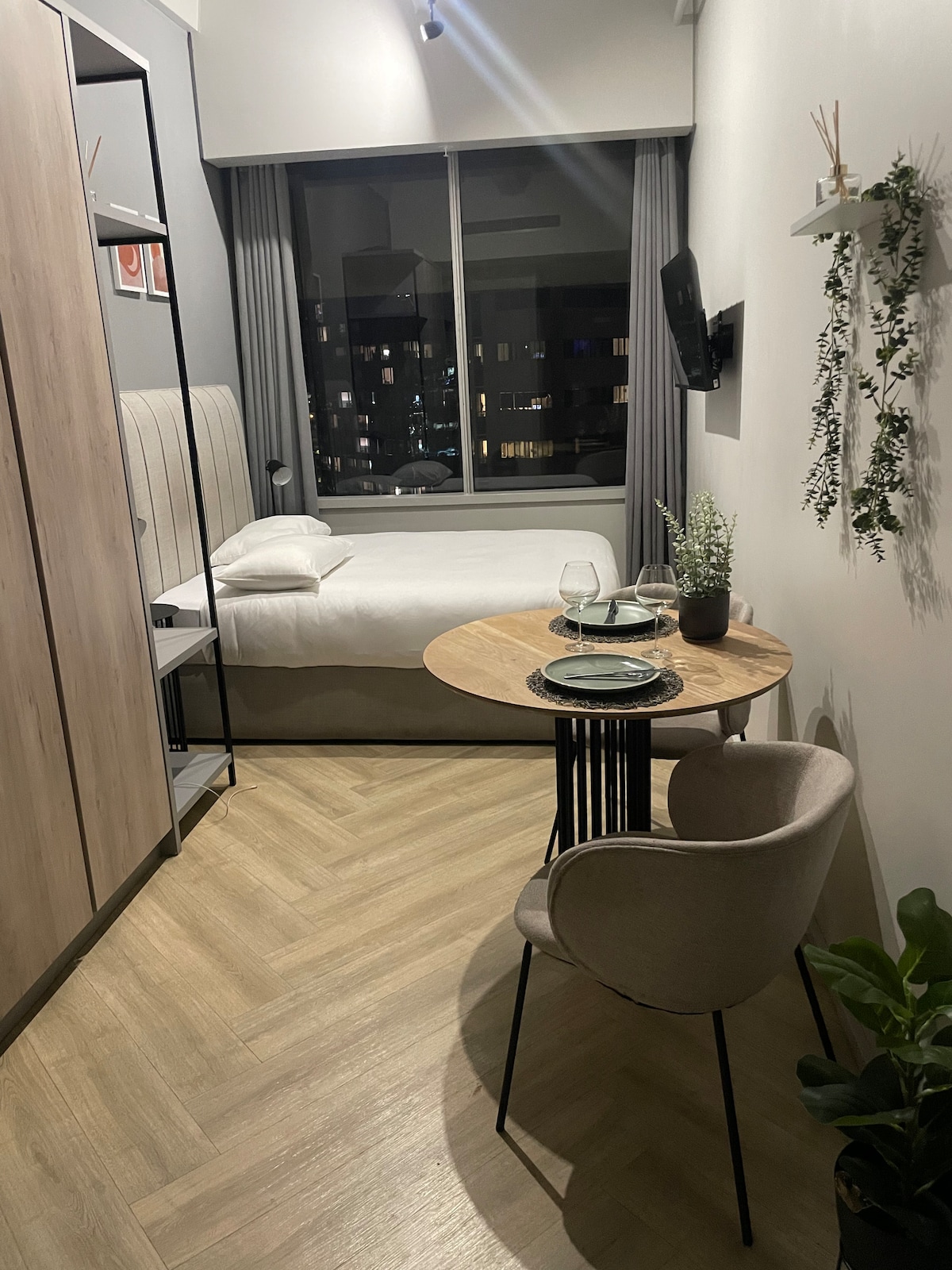 Հանգույց 3. Մնացեք այն ամենի մոտ, ինչ ուզում եք այցելել ։ Զբաղվեք շքեղությամբ, որն ունի ընդարձակ հատակագիծ ՝ մեծ մահճակալով, բաց լոգասենյակ ՝ առանձին լոգասենյակով և կրկնակի ունայնությամբ, գրասեղանով, սմարթ հեռուստացույցով և թեյի/սուրճի կայանով ։ Հանգստացեք հանգստացնող դեկորի մեջ, իսկ հատակից մինչև առաստաղ պատուհաններն առաջարկում են քաղաքի տեսարանների ընդարձակ տեսարաններ ։