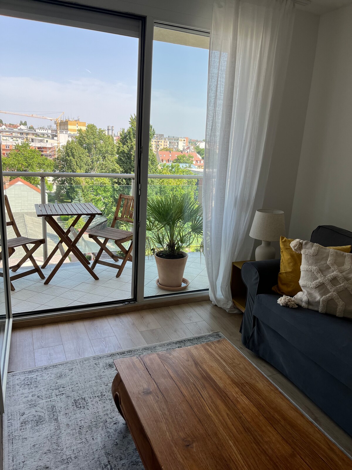 Գեղեցիկ, ժամանակակից, լուսավոր և նոր կահավորված բնակարան պատշգամբով Դանուբին մոտ գտնվող 13 - րդ թաղամասում: ԱՆՎՃԱՐ ԿԱՅԱՆԱՏԵՂ ավտոտնակում ։ Գեղեցիկ և խաղաղ տեղադրություն, սակայն այն ունի արագ մուտք դեպի քաղաքի կենտրոն (Դեակ հրապարակը ՝ 12 րոպե մետրոյով կամ առանց փոխանցման )։ Մետրոյի կայարանը գտնվում է բնակարանից 150 մ հեռավորության վրա: Անվճար նվերներ մեր հյուրերի համար ։ Այն կարող է տեղավորել 4 մարդ: Օդորակիչով բնակարանն ունի երկուսի համար նախատեսված ննջասենյակ (երկտեղանի մահճակալ ՝ 180x200), ընդարձակ հյուրասենյակ ՝ երկուսի համար նախատեսված բազմոցով (150x200 )։