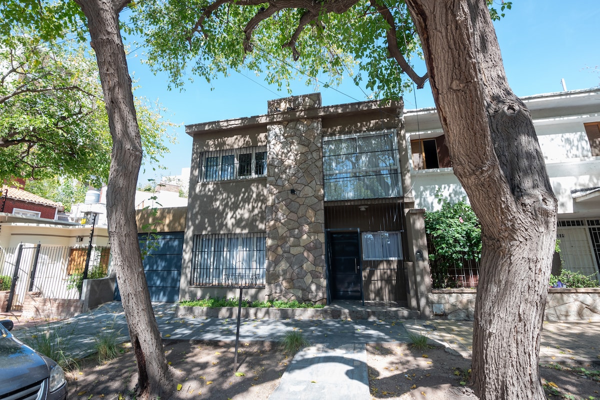 Հարմարավետ տուն Մենդոզայում ՝ «Գեներալ Սան Մարտին» զբոսայգու դարպասներից հեռու ։ Եթե փնտրում եք հարմարավետություն և անմոռանալի վայր համատեղող տուն, ապա ճիշտ տեղում եք ։ Մենք առաջարկում ենք 2 լիովին կահավորված լոգասենյակ ՝ շամպունով, կոնդիցիոներով, օճառով, ֆենով, 2 ընդարձակ ննջասենյակ ՝ երկտեղանի մահճակալներով և բարձրորակ սպիտակեղենով, Wi - Fi ՝ ավելի քան 95 Մբիթ/վ արագությամբ և անվճար կայանատեղի տարածքում ։ Ամրագրեք ձեր կատարյալ հանգիստը հիմա ։