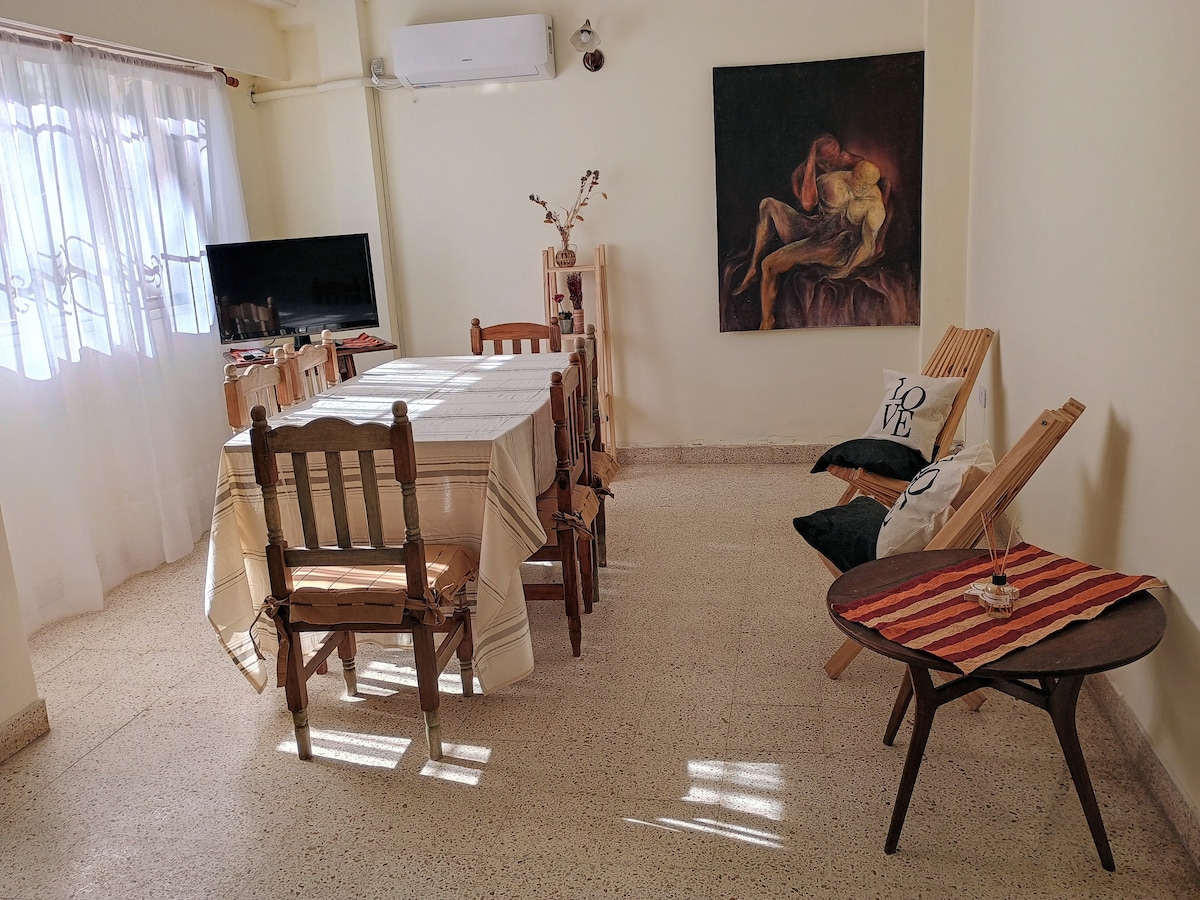 Լուսավոր, մաքուր և կոկիկ ՝ սա հիանալի 75 մ2 մակերեսով բնակարան է, որը գտնվում է հիմնական պողոտաներից մեկից 50 մ հեռավորության վրա ։ Իդեալական է ընտանիքի հետ հանգստյան օրերն անցկացնելու համար: Այն բաղկացած է 2 ննջասենյակից (1 - ը ՝ երկտեղանի մահճակալով, մյուսը ՝ 2 մեկտեղանի մահճակալով), լիովին կահավորված խոհանոցից և փոքրիկ բացօթյա պատիոյից ։ Մսագործ, մթերային խանութ, գազ, պիցցերիա և տարածաշրջանային արտադրական տուն ՝ բնակարանից ընդամենը 100 մ հեռավորության վրա ։