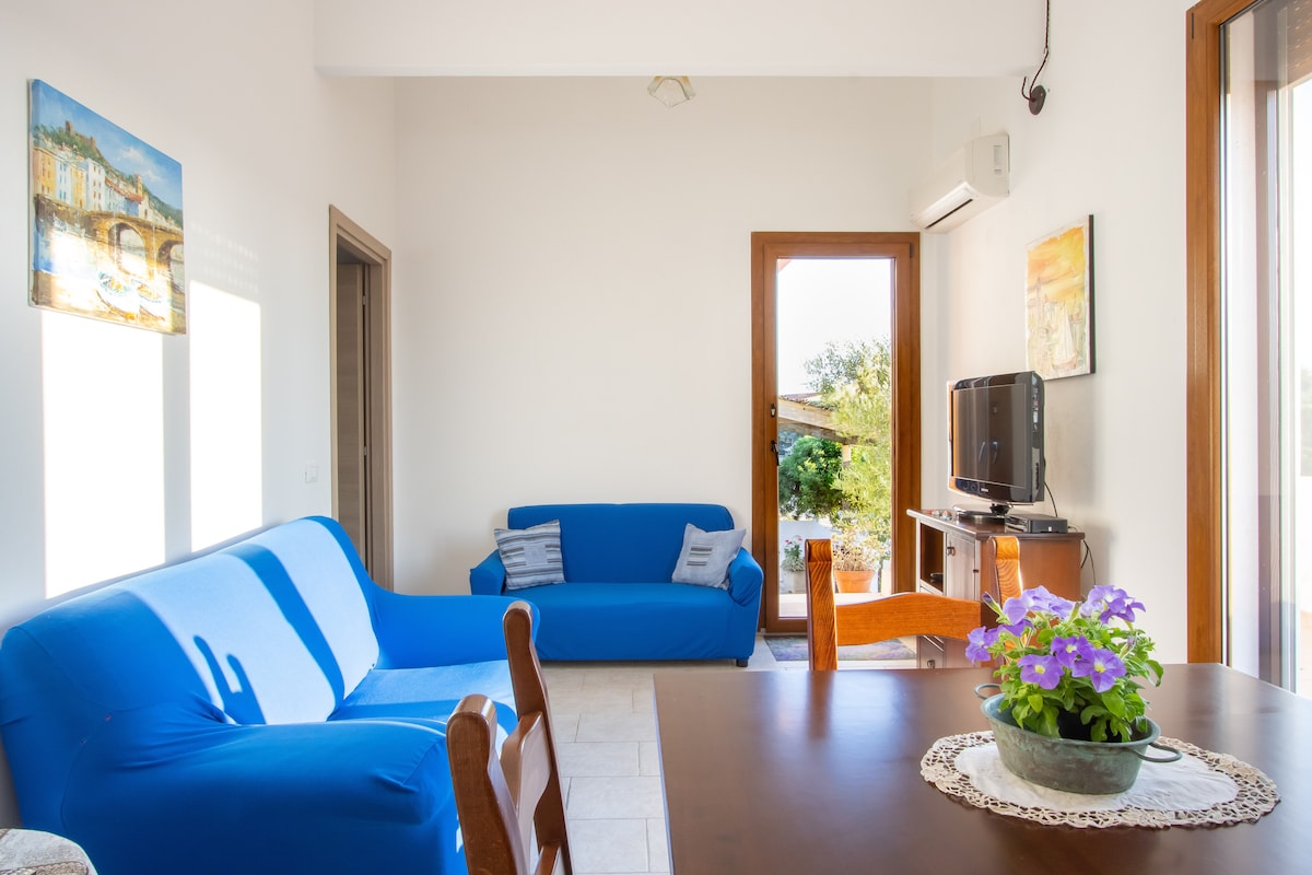 Ընդարձակ և լուսավոր տունը գտնվում է ծովի դիմաց ՝ Մանդրիոլա գյուղում, Սինիս թերակղզում: Վերջերս վերանորոգված տունն ունի երկու ննջասենյակ, խոհանոց, մեծ հյուրասենյակ, լոգասենյակ, բացօթյա ցնցուղով բակ և դեպի ծով նայող վերանդա ։ Տունը նայում է փոքրիկ ծծումբին և ընդամենը մի քանի հարյուր մետր հեռավորության վրա է գտնվում Պուտզու Idu, S'Anea scoada, Sa Mesa longa, Sa Rocca tunda և Քեյփ Մաննուի հրվանդանից ընդամենը մի քանի հարյուր մետր հեռավորության վրա: