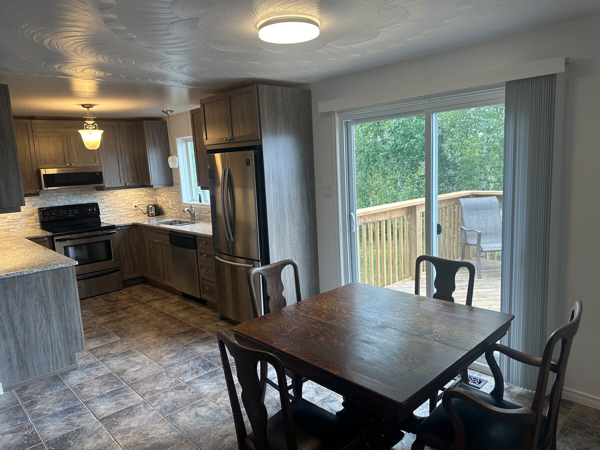 Kick back and relax in this calm, stylish space. Our three bedroom, two bathroom property is perfect for travelers who love being around nature and water. Our home provides a comfortable space for those travelling to the Sudbury area. We are minutes away from the hospital, Maison McCulloch Hospice as well as walking distance to beautiful trails.