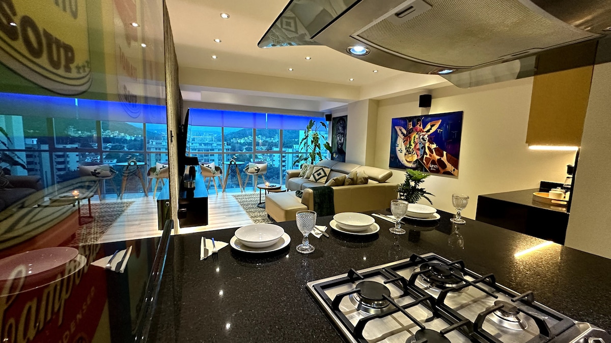 Exclusivo apt ubicado en privilegiada zona de la ciudad, rodeado de cafeterías, panaderías y restaurantes. La accesibilidad a la autopista es inmejorable. Posee una habitación acogedora y luminosa, vista a la montaña. Ideal para el descanso. Este inmueble es verdaderamente un espacio que combina comodidad, belleza y funcionalidad. Cuenta con: Planta eléctrica 100%, agua 24/7, A/A, Wifi, Smart TV, cocina equipada, secador y plancha de cabello, plancha para ropa, lav/secadora y vigilancia 24h.