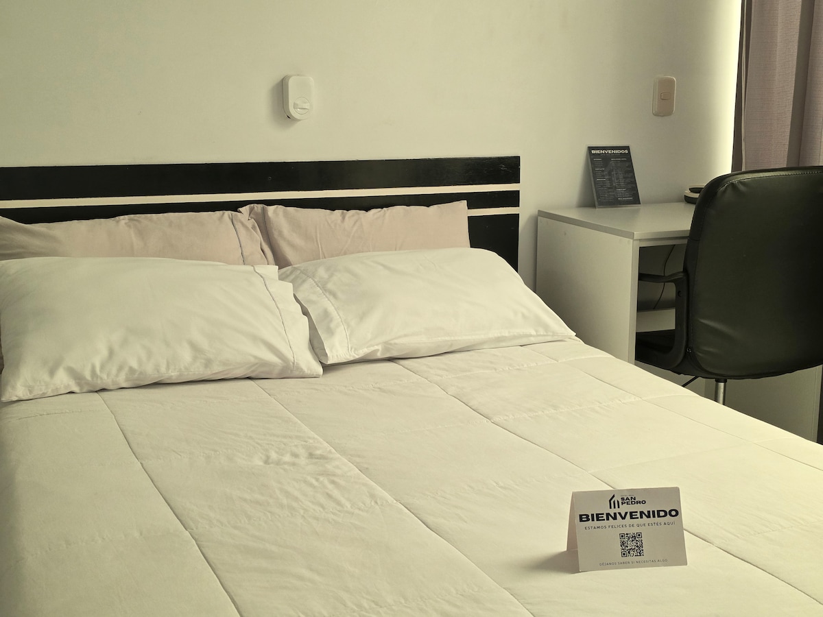 Habitación con baño y estacionamiento privado
