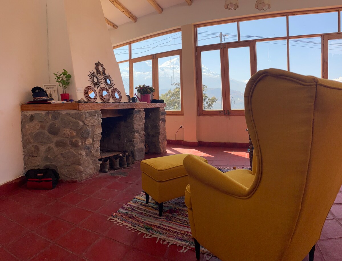 Una vista impresionante del Huascaran y los nevados Tropicales mas altos del Mundo, desde la comodidad de una casa espectacular. Lugar magico para descontaminarte de ruidos y de los problemas diarios de la ciudad.