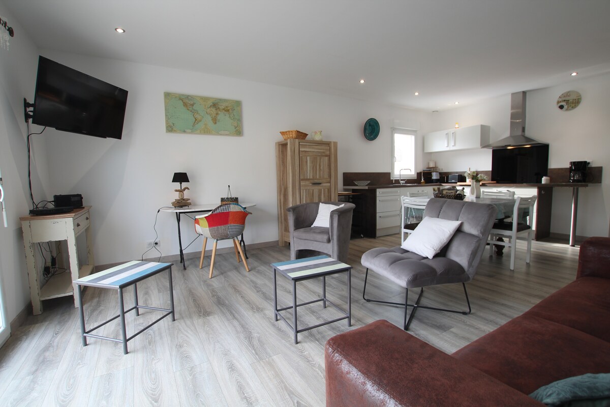 Բարի գալուստ իմ տուն ։ Բացահայտեք իմ վերանորոգված բնակարանը ՝ 55 մ2, երկաթուղային կայարանից և Կարենտանի կենտրոնից ոտքով 5 րոպե հեռավորության վրա ։ Նախատեսված է մինչև 4 հոգու համար ։ Այն առաջարկում է մեկ ննջասենյակ ՝ երկտեղանի մահճակալով, մեկ հյուրասենյակ ՝ բազմոցով ։ Հարմար է վայրէջքի լողափեր (Յուտա Բիչ 20 րոպե հեռավորության վրա), Ստե - Մերի - Էլիզ (15 րոպե) և Կան (50 րոպե) այցելելու համար ։ Ամրագրեք հիմա և պատրաստվեք հիանալի հանգիստ անցկացնելու մեր գեղեցիկ քաղաքում: