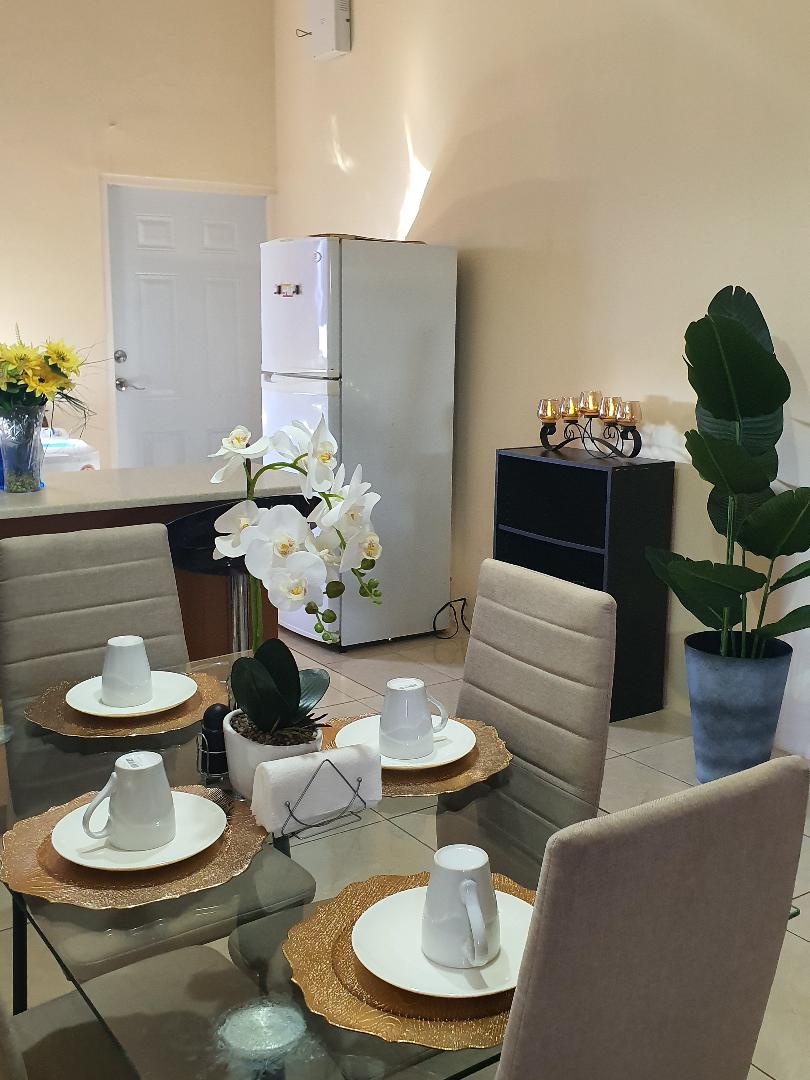 Escape to this cozy retreat in the secure gated community of Caribbean Estates, Portmore, located less than 5 minutes from major shopping and entertainment and 10 minutes from the beautiful Fort Clarence Beach. This peaceful haven blends elegant interior décor with beautifully landscaped outdoor living with a private patio and spacious wooden deck. Designed for comfort, safety, and serenity, come unwind and reconnect with nature. Ideal for couples, families, or solo travelers seeking a getaway.