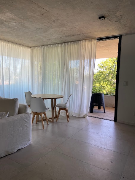 Moderno departamento con balcón, totalmente equipado y Wifi. Ubicado en segundo piso con salida a Boulevard. Aire acondicionado en living-comedor y habitación. Calefacción por losa radiante.