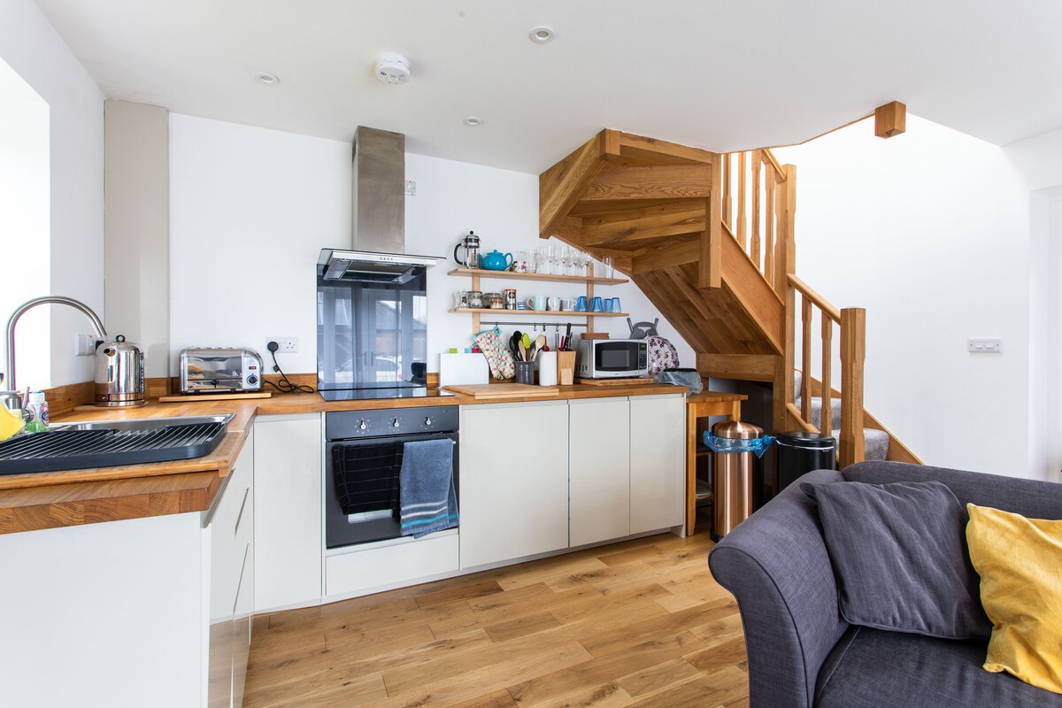 Վերջերս վերանորոգված այս հարմարավետ, մաքուր տունը գտնվում է Կարմարտեն շուկայական քաղաքում: Կարմարտենը պատմության մեջ ուղղաձիգ է և հավակնում է լինել Ուելսի ամենահին քաղաքը ։ Բլրի վրայով 5 րոպե քայլելը ձեզ կգտնի քաղաքի կենտրոնում, որտեղ ուտելու և հանգստանալու շատ տեղեր կան: Հանգիստ զբոսնեք «Սրբություն» գետով կամ այցելեք տեղական շուկայի տաղավարներից մինչև բարձր փողոցային վարդակներ գտնվող խանութների խանութները ։ Մեքենայով մենք ընդամենը 10 րոպե ենք Ուելսի ազգային բուսաբանական այգուց և շուրջ 30 րոպե Թենբի գեղեցիկ ծովային քաղաքից: Գտնվում է բնակելի փողոցում, և թեև հատկացված կայանատեղին միշտ տեղ չկա անմիջապես դրսում կայանելու համար ՝ ոչ այնքան զբաղված ճանապարհի վրա ։ Երբ անցնում եք շքամուտքով, ձախ կողմում ընդարձակ խոհանոցն է ՝ ճաշասեղանով, որը հեշտությամբ նստում է չորս հոգու ։ Կա էլեկտրական օդափոխիչ վառարան և ջեռոց, սառնարան և լվացքի մեքենա: Սրճեփ մեքենա, տոստեր և թեյնիկ: Մենք ներառել ենք այն ամենը, ինչի կարիքը կունենայիք, եթե մնայիք երկու գիշեր կամ ավելի երկար ։ Հյուրասենյակը հարմարավետ և հաճելի տարածք է հանգստանալու համար ՝ 40« խելացի» հարթ էկրանով հեռուստացույցով: Հյուրասենյակից աստիճանները տանում են դեպի երկու ննջասենյակ և լոգասենյակ ։ Ավելի մեծ ննջասենյակը շատ ընդարձակ ժամանակակից տարածք է ՝ երկտեղանի մահճակալով, բաց զգեստապահարանով և պատի հայելիով ։ Շատ տեղ ցանկացած լրացուցիչ իրերի համար, ինչպիսիք են կոտլետը, նույնիսկ լրացուցիչ անձը, եթե դասավորված է: Երկրորդ ննջասենյակը կազմված է որպես երկվորյակ, կրկին ժամանակակից և հարմարավետ զգացողություններով: Ներառում է բաց զգեստապահարան և հայելի պատի վրա: Մենք ունենք նաև գերարագ օպտիկամանրաթելային լայնաշերտ ինտերնետ: