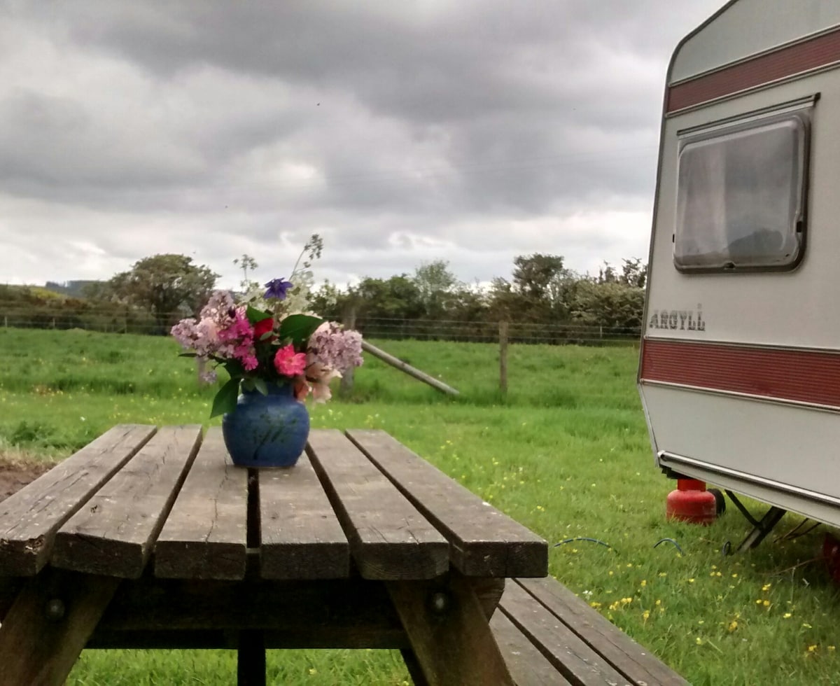 Եկեք և մնացեք մեզ հետ մեր ուելսյան ոչխարների ագարակում, էկոլոգիապես մաքուր քեմփինգում, մեր հարմարավետ վերամբարձ քարավանում (փրկված է քարավանից «Երկինքից »): Մեկուսի տարածք ՝ ամբողջական փայտի վառվող վառարանով և հակահրդեհային սեղանով և հարմարավետ երկտեղանոց մահճակալով ։ Վայելեք ձեր սեփական կրակարանի մոտ ՝ տարվա ցանկացած եղանակին տպավորիչ համայնապատկերային լեռնային տեսարաններով, որոնք դիտում են աստղազարդ երկնքի տարածությունը ։ Հանգստանալու և շնչելու համար բավականաչափ տեղ կա.............