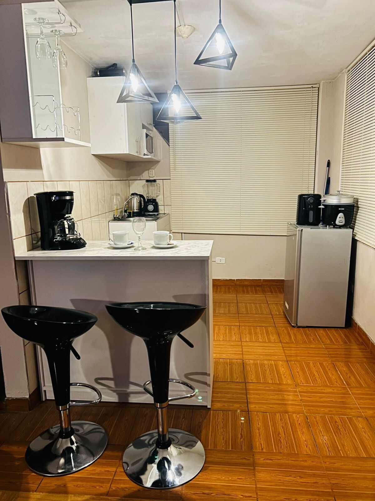 Տարածք, որը մտածում է հարմարավետորեն հանգստանալ բոլոր հարմարություններով, որպեսզի ձեզ զգաք ինչպես տանը ։ Եթե դուք անցնում եք Լիմայով և սպասում եք ձեր հաջորդ թռիչքին: Սա կատարյալ վայր է ։ Շատ մոտ է Խորխե Չավեսի միջազգային օդանավակայանին: Բնակարանն ունի ՝ 1 երկհարկանի մահճակալ ՝ 1 1/2 նստատեղով Տաք ջուր Սառնարան ՝ սառցարանով, լվացքի մեքենայով, ջեռոցով, գազօջախով, միկրոալիքային վառարանով, խոհանոցով, սպասքով, դանակ - պատառաքաղով ։ Սուպեր ինտերնետ Wi - Fi MASWINNER 500 Մբիթ/վ հզորությամբ ։ Օդորակման ննջասենյակ ։
