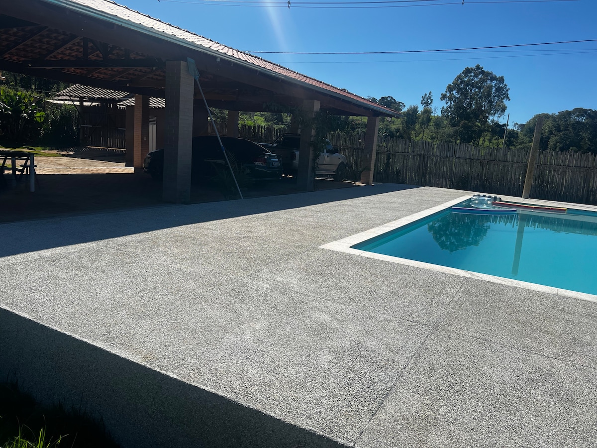 Հավաքեք ձեր ընտանիքին և ընկերներին ՝ վայելելու այս հանգիստ կացարանը, որը տեղադրված է փարթամ բնության մեջ, մայթից օգտվելու հնարավորությամբ, բոլոր տեսակի խանութների, դեղատների, սուպերմարկետների մոտ: Ձեր հանգիստն այժմ ունի անուն ՝ Fazendinha Bela Vista!!! Wi - Fi, ՋԵՌՈՒՑՎՈՂ լողավազաններ, ապակյա սաունա ՝ համայնապատկերային տեսարաններով, լճակ ձկնորսության և ոտնակների համար, փայտի վառարան, մանղալի մանղալ և շատ, շատ բնություն!!! Մեր խոհանոցը հագեցած է այն ամենով, ինչ անհրաժեշտ է առանց անհանգստանալու վայելելու համար: