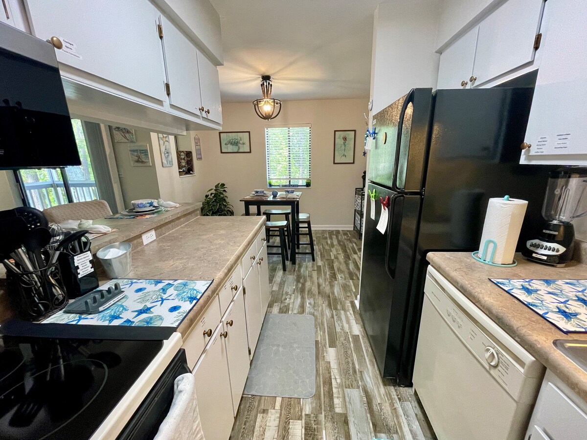 Հանգիստ կոնդոմինիումը, որը գտնվում է արտասովոր ափամերձ քաղաքում, առաջարկում է կատարյալ հանգիստ լողափերի, գոլֆի, ձկնորսության, գնումների և շատ հիանալի ռեստորանների մոտակայքում ։ Դուք կունենաք տան բոլոր հարմարությունները ՝ լիովին կահավորված խոհանոցով, ընդարձակ բնակելի տարածքով, հարմարավետ մահճակալներով և տեղում լողավազանով, ջակուզիով և մանղալներով: Գտնվելով երկրորդ հարկում, որտեղից բացվում է խաղաղ անտառապատ տարածք, վայելեք առավոտյան սուրճը կամ երեկոյան ըմպելիքները պատշգամբում ցուցադրված էկրանին ։ Րոպեներ մինչև տեղական լողափեր և 30 րոպե հեշտ ճանապարհ դեպի Միրթլ Բիչ ։