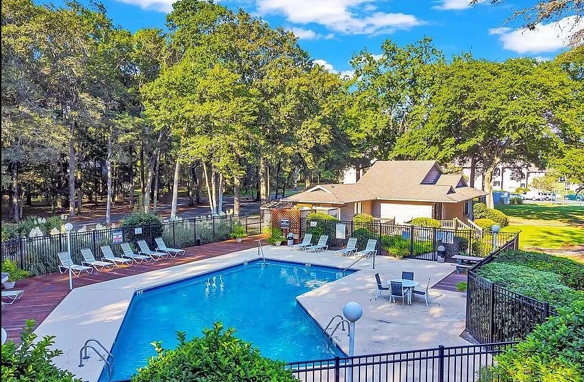 Relaxing condo nestled in a quaint waterfront town offers a perfect getaway close to beaches, golfing, fishing, shopping, and many great restaurants. You’ll have all the amenities of home with a fully equipped kitchen, spacious living area, comfortable beds and onsite pool, hot tub and BBQ grills. Located on the second floor, overlooking a serene wooded area, enjoy your morning coffee or evening beverage on the screened in porch. Minutes to local beaches and 30 min. easy drive to Myrtle Beach.