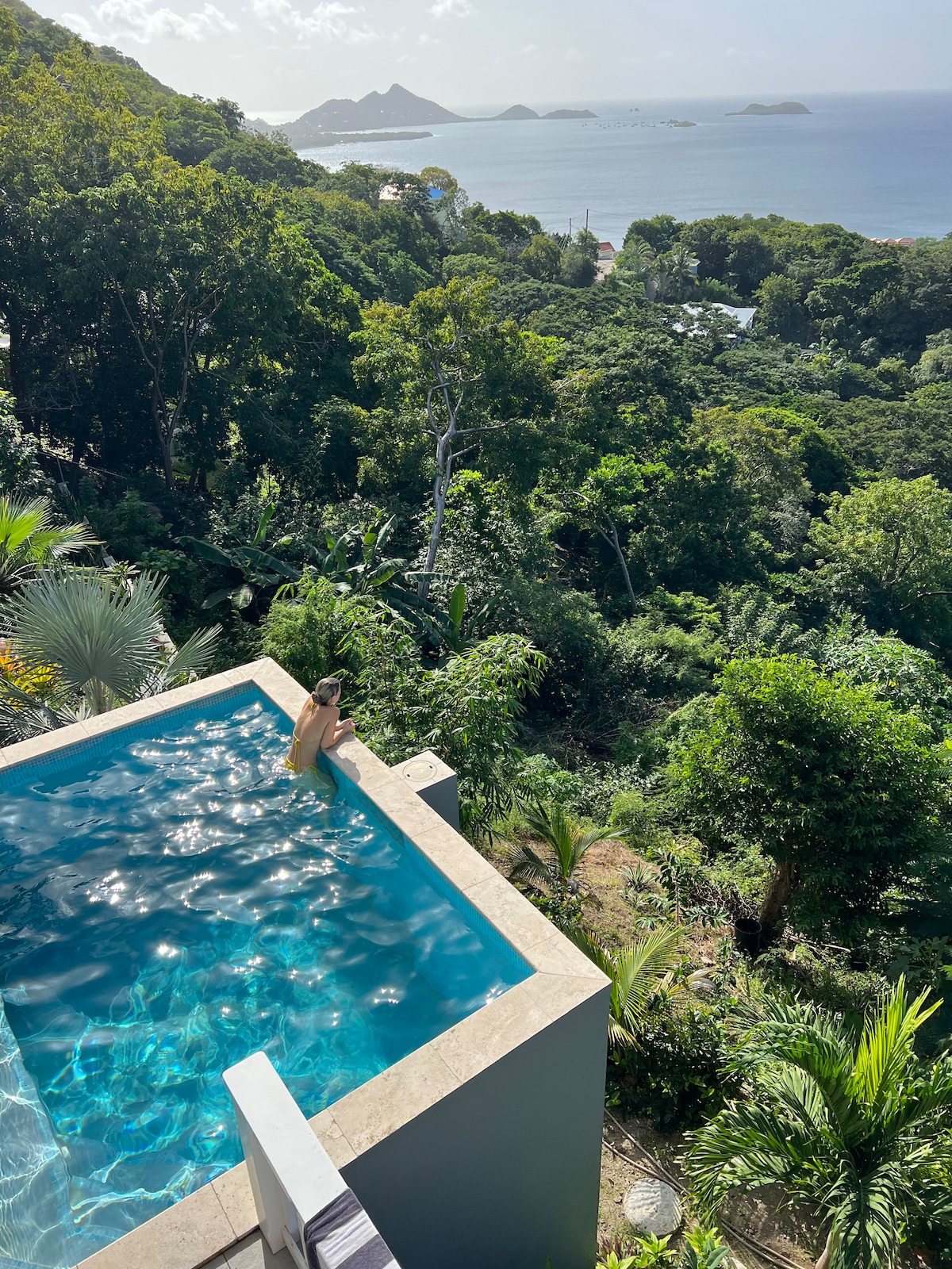 Prospect House sits in the hills in the north of Carriacou, cooled by the sea breeze & surrounded by forest for absolute peace. The Garden Apartment is beautifully appointed, modern & spacious. All rooms open directly onto the large private west-facing balcony with spectacular views out to sea over tropical gardens. Luxury bathroom fittings, toiletries and linens are supplied. Guests have free use of the stunning infinity pool and sun deck.