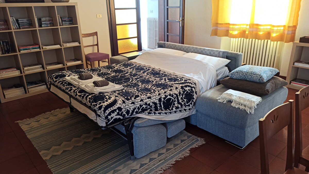 Si tratta di un appartamento ristrutturato secondo i principi della bioarchitettura nel rispetto del casale che risale alla metà del diciottesimo secolo. I voltini e una parete nella zona giorno lasciata a vista enfatizzano l'antichità del luogo in cui soggiornerete. La cucina è moderna con piano a induzione ed è dotata di ogni utensile per cucinare. Il tavolo è un pezzo unico che arricchisce l'ambiente. Il bagno è di ultradesign in modo particolare la doccia che è stata ricavata da una nicchia.