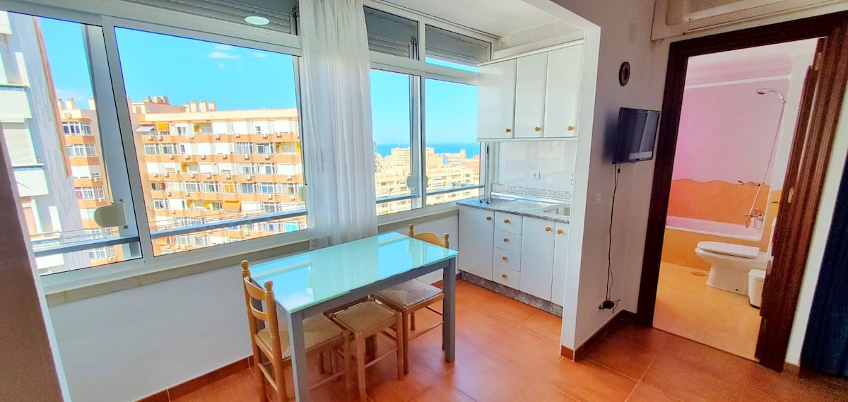 Recently renovated, studio apartment (aprox 38 m2 incl balcony) overlooking the beach of La Carihuela. Close to the city center of Torremolinos (aprox. 5 min walk). Astonishing view to the Mediterranean Sea, to Carihuela village, and the mountains on the right hand side. Sit on the Balcony all day and night just relaxing and enjoying the sound of the waves and the buzzling beach life. Our apartment has direct access to the beach (lift) and upstairs to the city center (lift) of Torremolinos.