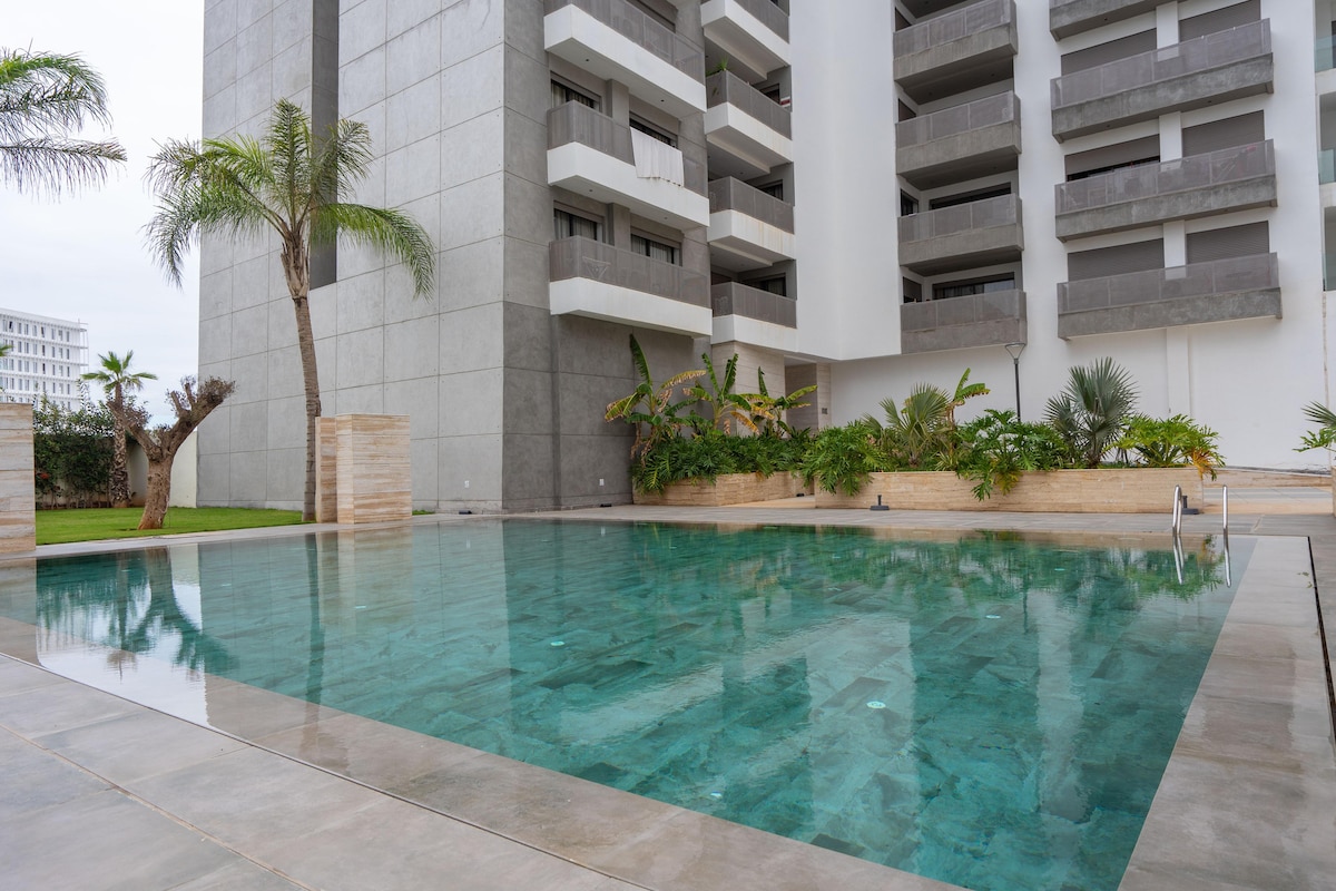 Նոր բնակարան ՝ լիովին կահավորված, օպտիկամանրաթելային Wi - Fi - ով, NETFLIX ։ Նորաձև ժամանակակից դեկոր ։ Շատ հանգիստ և լուսավոր բնակարան ՝ դեպի ներքին բակ բացվող տեսարաններով ։ Կասաբլանկայի կենտրոնում գտնվող ապահով բնակության վայրում բիզնես կենտրոնի թաղամասը միևնույն ժամանակ աշխույժ է և ունի մոտակայքում գտնվող բոլոր օգտակար խանութները, այդ թվում ՝ առևտրի կենտրոնը: Լողավազանի և ֆիթնեսի սենյակն անվճար է առաջարկվում բնակիչներին ։