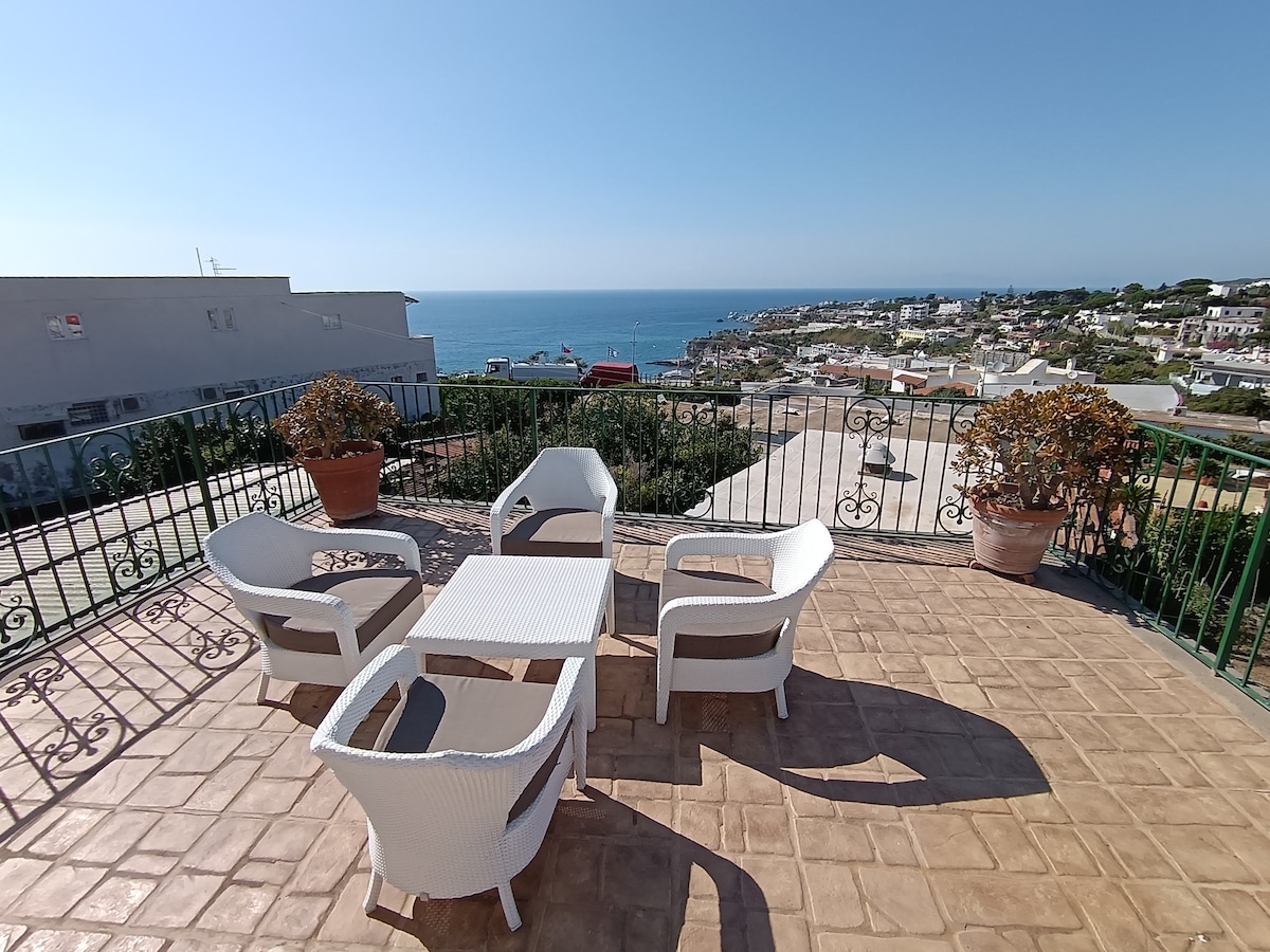Եթե մնալու տեղ էիք փնտրում Իշիա կղզում ՝ հիասքանչ տեսարանով, որը հագեցած է ձեզ համար բոլոր հարմարություններով և շատ բացօթյա տարածքներով, դա կարող է լինել այն, ինչ փնտրում էիք: Գտնվում է 1960 - ականների վիլլայի վերին հարկում ՝ ծովից մի քանի րոպե հեռավորության վրա, ռեստորաններ, բարեր, գնումներ կատարեք Իշիա Պոնտեում և Արագոնյան դղյակում ։ Իշիա նավահանգստից 2 կիլոմետր հեռավորության վրա ։ Ավտոբուսի կանգառ սեփականության դիմաց ։ Օդորակիչով ։ Արագ Wi - Fi