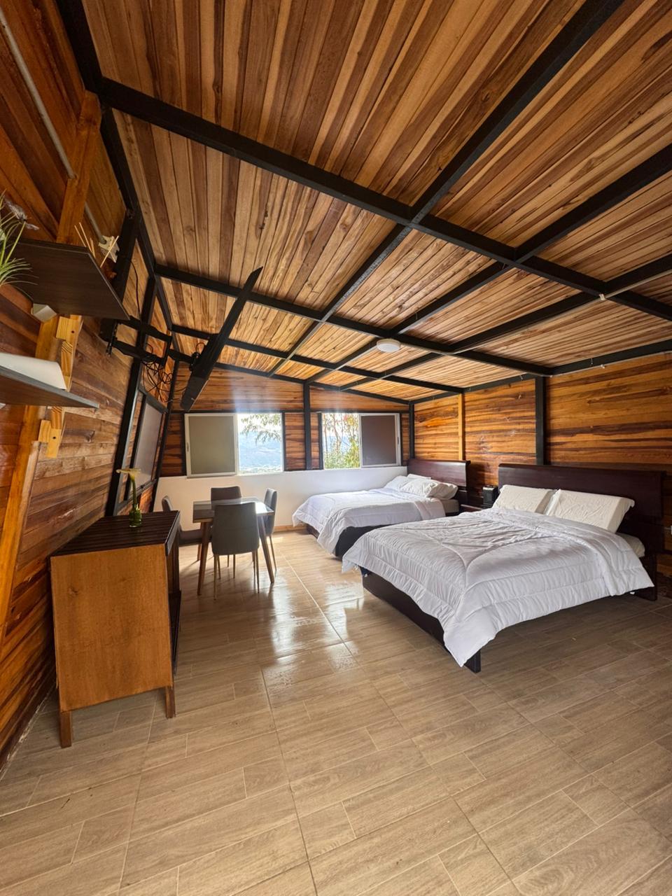 Descubre un refugio en la montaña donde la tranquilidad y la naturaleza son protagonistas. Nuestras cabañas combinan diseño minimalista, comodidad y vistas únicas al paisaje boyacense. Disfruta de un jacuzzi privado, noches estrelladas junto a la fogata y el descanso que mereces en un entorno natural y silencioso. Ideal para familias, parejas o amigos que buscan desconexión, bienestar y una experiencia auténtica en la montaña, rodeado de granjas y huertas boyacences. 🌿