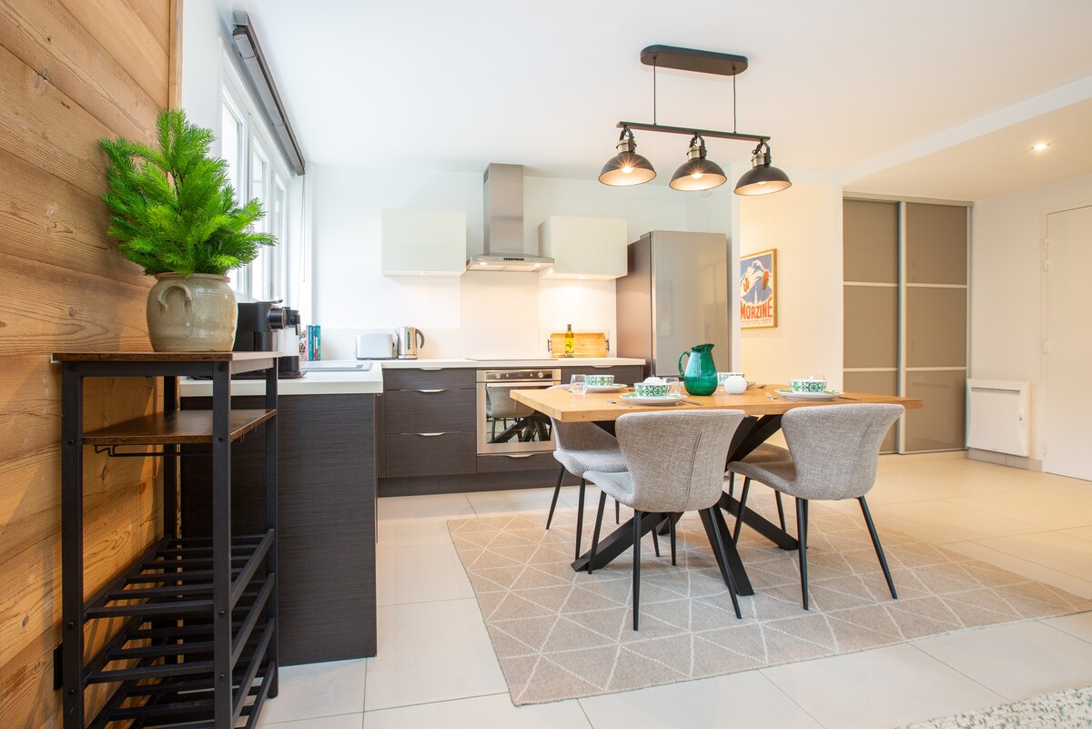 Մոն Բլանի և նրա ասեղների դիմաց գտնվող այս լուսավոր բնակարանը, որը գտնվում է դարասկզբի հին պալատում, կողջունի ձեզ ՝ անկախ այն բանից ՝ զույգ եք, ընկերներ, թե ընտանիք ։ Դրա առատաձեռն ծավալները, զբոսայգու հանգստությունը, գնումների մեկնումներին մոտ գտնվելու վայրը, քաղաքի կենտրոնը այն դարձնում են արտոնյալ վայր Շամոնիում ձեր հանգստի համար: Պատշգամբներում նախաճաշով կարող եք վայելել սառցադաշտերի գեղեցիկ տեսարանները ։
