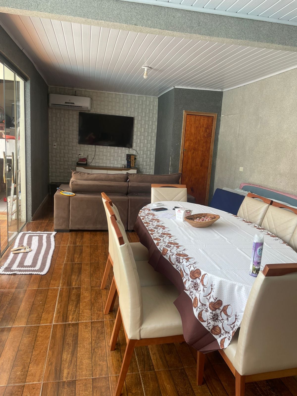 Lugar tranquilo, com ambientes espaçosos, casa tem dois quartos e uma suíte, quarto 01 e suíte com ar condicionado, quarto 03 com ventilador portátil; Disponibilizamos cobertores, travesseiros, lençóis, todos os utensílios domésticos, talheres, pratos, copos para até 12 pessoas.