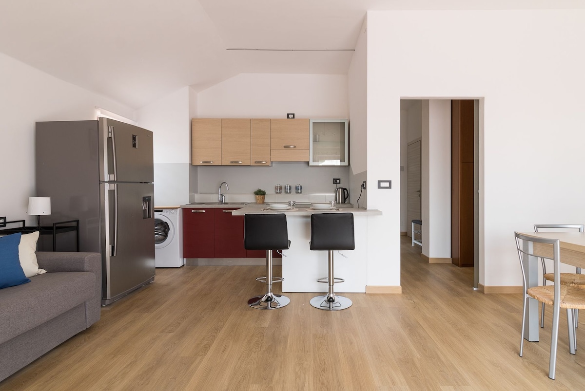 Բացահայտեք ձեր դրախտի անկյունը Պեշիերա դել Գարդայում ՝ Գարդա լճի մոտակայքում ։ Մոտ 160 մետր բարձրությամբ այս հմայիչ բնակարանը, որը գտնվում է խաղողի այգիներով շրջապատված պատմական ագարակում, իդեալական է 2 - ից 6 հոգանոց ընտանիքների համար ։ Երկու երեք ննջասենյակ, որոնցից յուրաքանչյուրն ունի առանձին լոգասենյակ, ընդարձակ հյուրասենյակը ՝ բուխարիով, ողջունում է հանգստի պահերը, մինչդեռ պրոֆեսիոնալ խոհանոցը կատարյալ է համեղ կերակուրներ պատրաստելու համար: Վայելեք պարտեզի տարածքը ՝ իդեալական բացօթյա ճաշելու համար ։