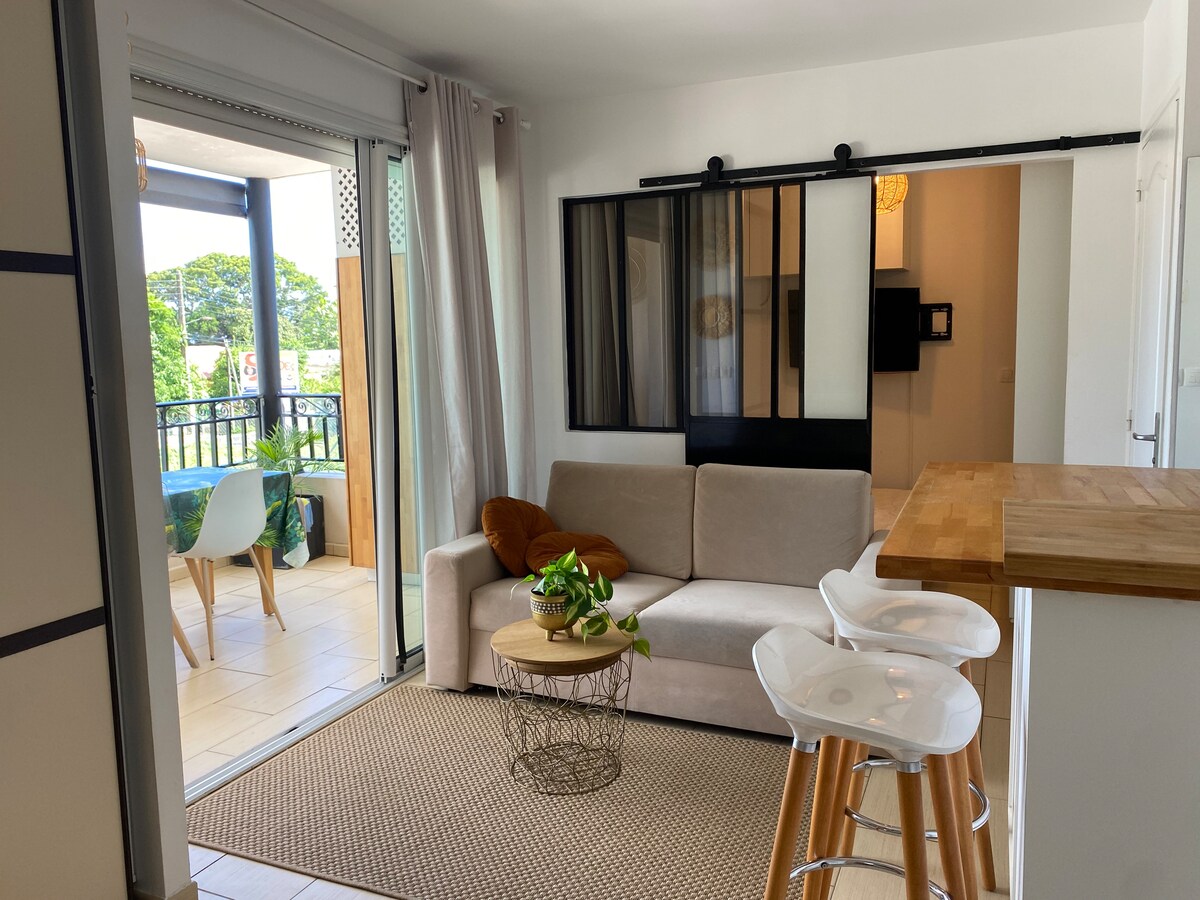 Come and discover our sweet cottage surrounded by tropical plants and palm trees ! You can take time to relax, go to the beach and enjoy swimming in the lagoon.... Ten min. drive is enough to reach the town's centre and all its commodities.