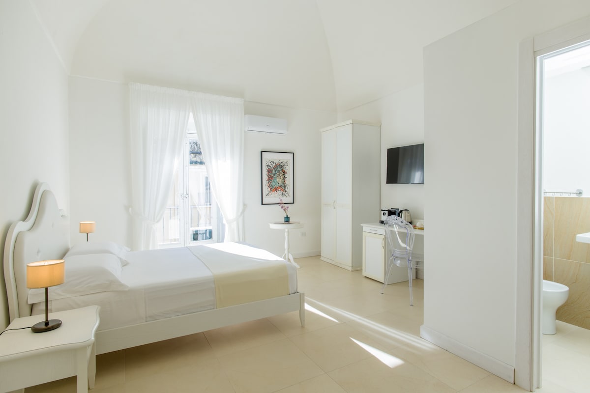 Benvenuti a Casa Alessandro, una residenza rurale dei primi del ‘900 a 20 minuti dalla Reggia di Caserta, immersa nella quiete di Corte Marco’sc, amata da artisti e viaggiatori in cerca di bellezza. • junior suite de 40mq con salottino, tavolo per colazione e accesso diretto al terrazzo. • una seconda cameretta singola disponibile su richiesta per una terza persona • angolo cottura attrezzato con minifrigo, microonde, bollitore e piastra a induzione, ideale per colazioni o pasti veloci