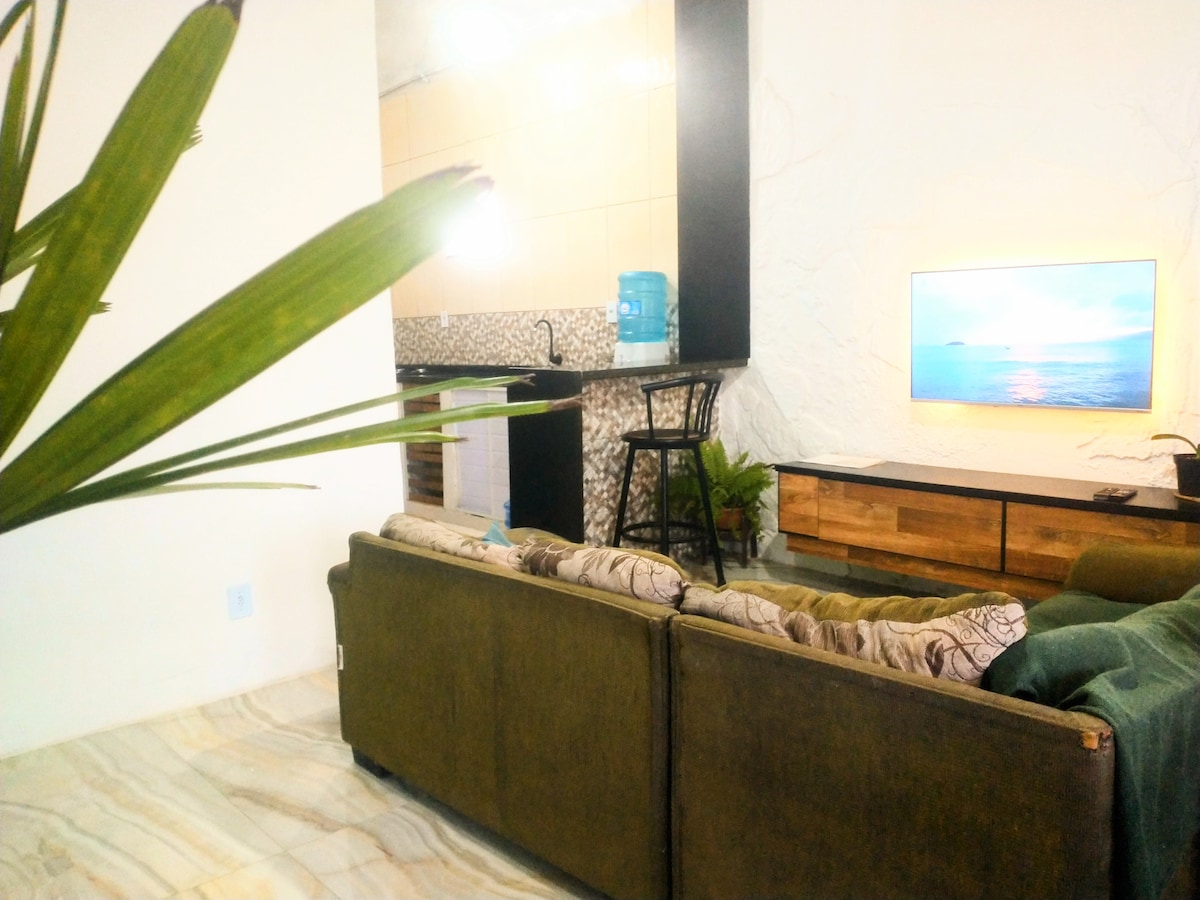 Տուն կոնդոմինիումում ՝ լողափից 90 մետր հեռավորության վրա, գլխավոր պողոտայում ։ Տուն ՝ 2 ննջասենյակով, 1 ննջասենյակ ՝ երկտեղանի մահճակալով, 1 ննջասենյակ ՝ 4 մեկտեղանի մահճակալով, 5 ներքնակ, 1 երկտեղանի ներքնակ, 2 ներքին լոգասենյակ, խոհանոց և հյուրասենյակ, մեծ տարածք ՝ մանղալով և ցնցուղով, 2 տեղ ՝ խոզապուխտով ։ Առաստաղի օդափոխիչ ննջասենյակներում և հյուրասենյակում 43 դյույմանոց հեռուստացույց (Սմարթ հեռուստացույց) Wi - Fi Bluetooth ձայնային արկղ ° Միկրոալիքային վառարան; Օդային ֆրի Սնուցման կաթսա Սանդուիչեյրա Բլենդեր Մենք ունենք դանակ - պատառաքաղ, ափսեներ, բաժակներ և կաթսաներ ։