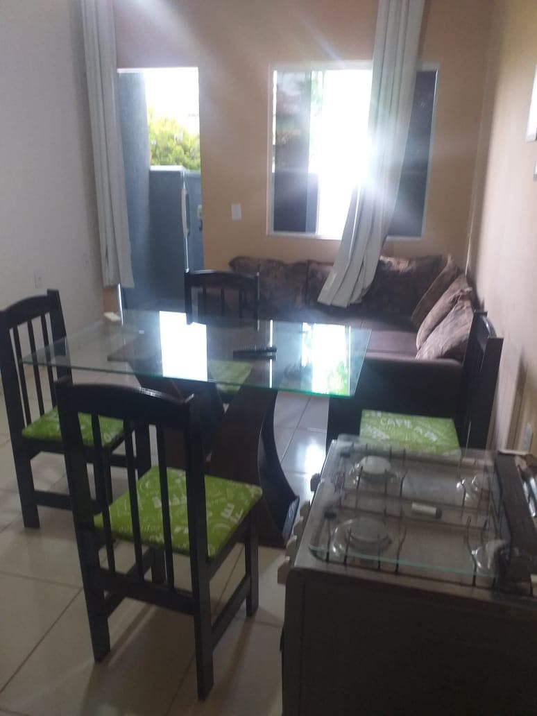 Casa mobiliada, segura e arejada. 2 quartos espaçosos com persianas anti-alérgicas, telas mosquiteiras e grades nas janelas, quintal gramado, churrasqueira, portão automático, interfone, INTERNET 400MB. Quarto I c/ cama Queen Size e split, quarto II com 3 camas de solteiro, ar condicionado. Sala com SmartTV 40"c/IPTV), ventilador teto, ventilador pedestal e sofá, cisterna , caixa d'água com bomba automática. Enxoval e utensílios domésticos completo. Aceitamos Pet de pequeno porte.