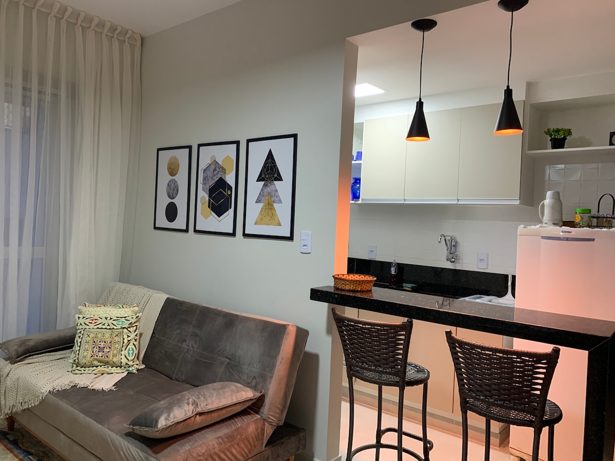 Apt novo, 3 qts com ar condicionado/churrasqueira.