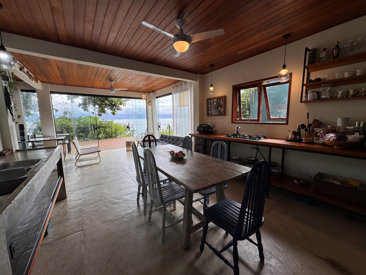 Propriedade pé na areia em frente a praia com lindas vistas e amplo jardim. A casa possui vista para o mar de todos os ambientes, desde da mesa de café da manhã, até no conforto da cama. Localizada em uma ARIE(área de relevante interesse ecológico), onde está o Instituto de pesquisas marinhas da Usp . Acesso à propriedade e a 2 praias controlado por terra. Em frente a praia existe um bar flutuante para embarcações e pode existir musica.