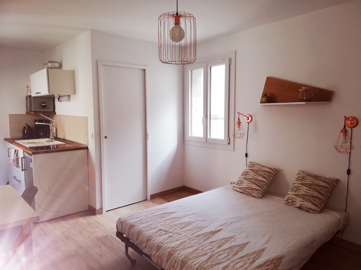 Հանգստացեք այս հանգիստ և նորաոճ տանը ։ Գտնվում է Sussargues է Hérault, սրտում խաղողի այգիների եւ Garrigues, 25 րոպե հեռավորության վրա Montpellier եւ լողափ, մի փոքր գյուղում բոլոր հարմարություններով, այս ստուդիան կդարձնի ձեզ ճանապարհորդել շնորհիվ իր ձեւավորում. Ստուդիան կցված է մեր տանը, որտեղ ապրում ենք մեր 2 երեխաների հետ: Հաճելի լողավազան, հյուրասիրված աղով, տեսադաշտից դուրս: Այգի և մեծ կտուր: