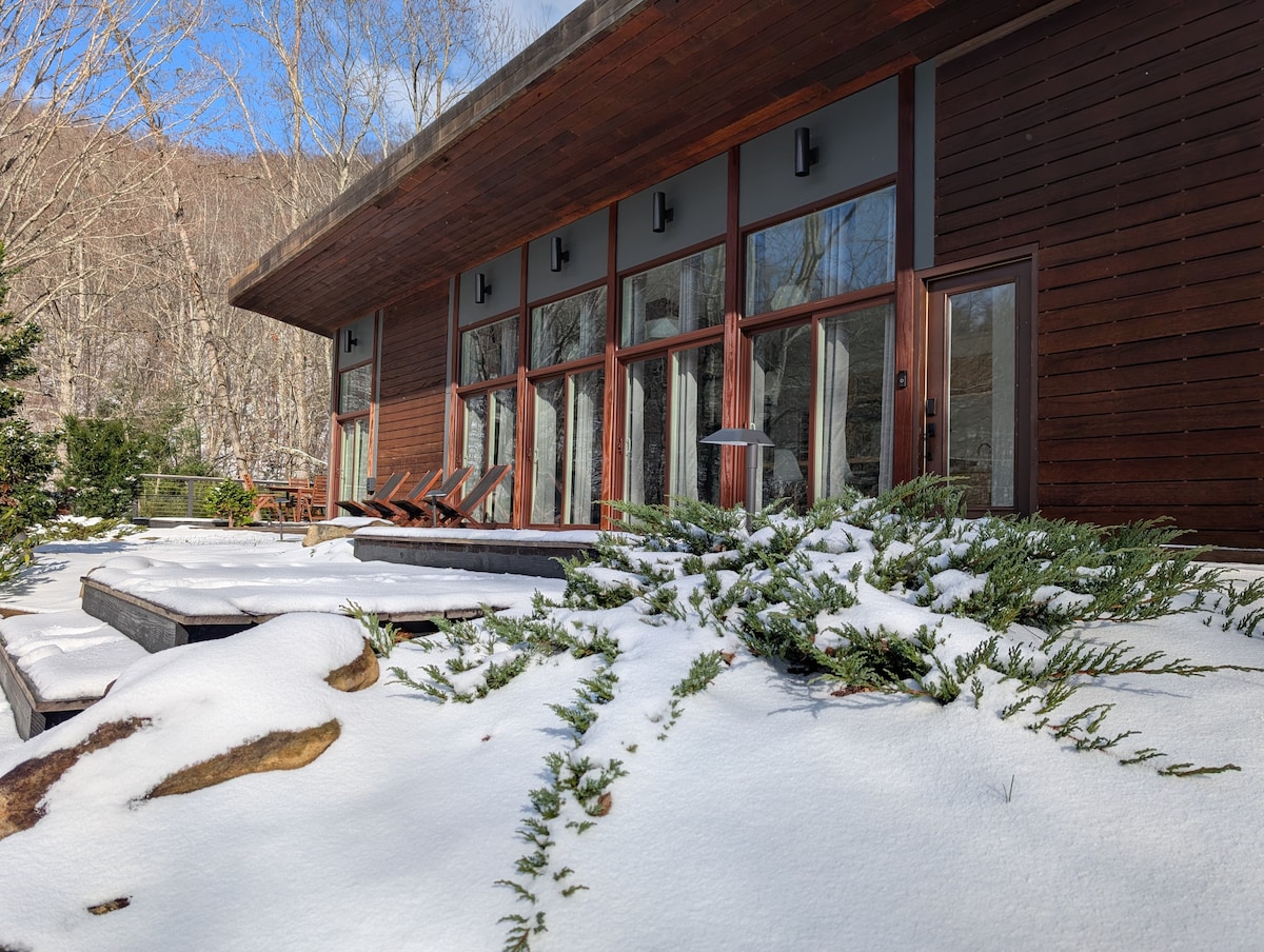 + Private Hot Tub: Relax under the stars after a day of hiking or skiing + Mountain Views from Living Room, porch/deck + WiFi - Starlink (see note below) + Less than 3 miles to Cataloochee Ski Resort and Cataloochee Ranch + Comfortable Living Space: Cozy up by the fireplace in the living room. + Outdoor fire-pit +We have central heat but no AC. +The cabin sits at the top of a private road. It’s not maintained by the city. Please see details on road conditions under “other details to note."